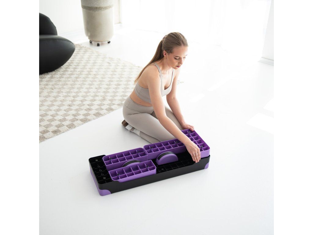 Stejně jako jeho menší protějšek má i AS008L balanční podložky, které se upevňují ze spodní strany stepu. Díky nim se klasický můstek mění v pomůcku pro trénink rovnováhy a stabilizace, zapojuje posturálních svaly a zlepšuje motorickou koordinaci.