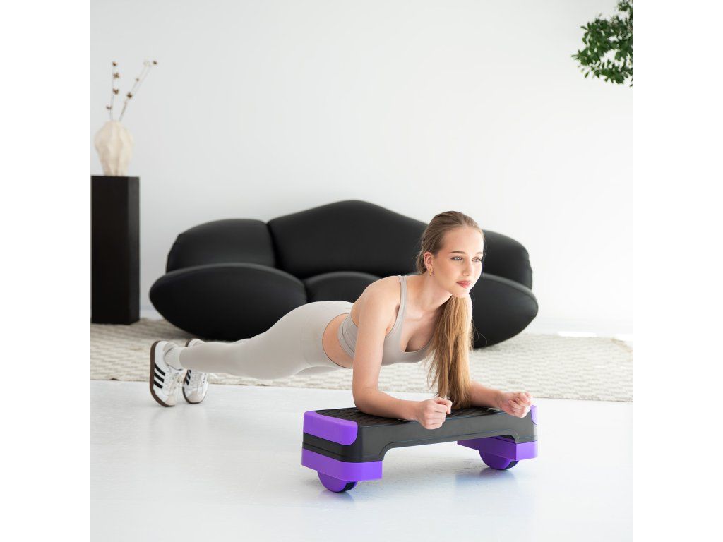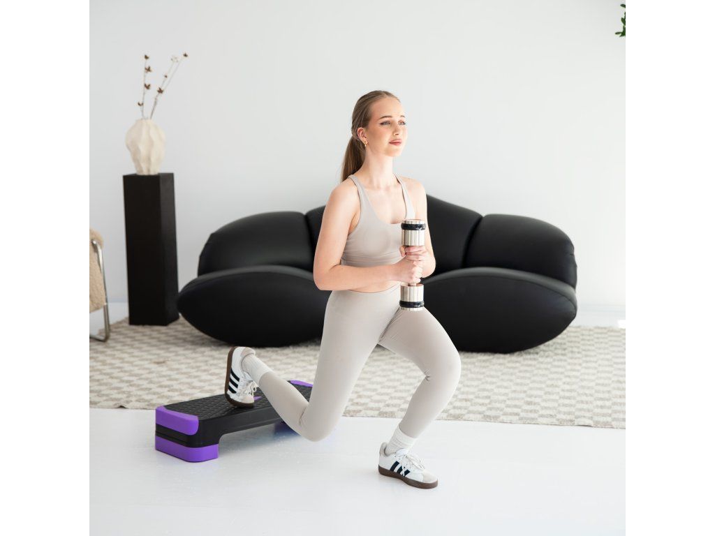 Step má dvoustupňové nastavení výšky, což umožňuje přizpůsobit intenzitu tréninku aktuální úrovni pokročilosti nebo konkrétnímu cviku. První poloha bude ideální pro rozcvičení nebo rehabilitační cvičení, druhá poloha pro dynamičtější a intenzivnější kardio tréninky.