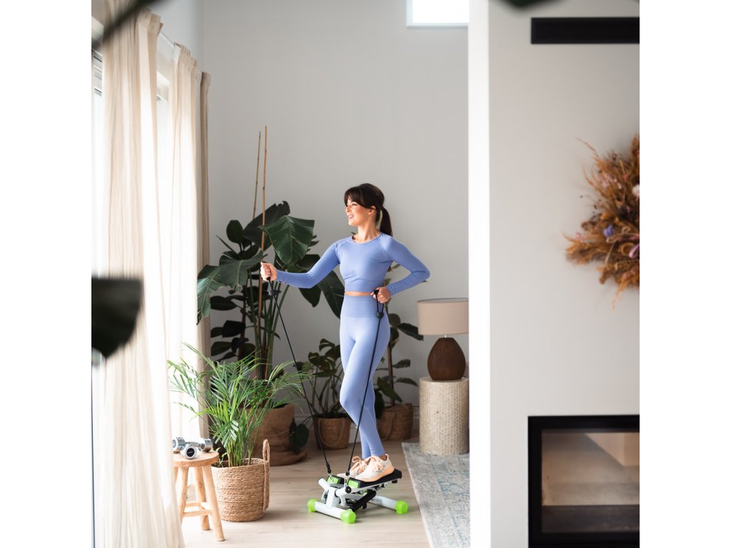 Malý a elegantní stepper, s kterým díky pravidelnému cvičení můžete získat elegantní, štíhlé a pevné hýždě. Výhodou tohoto modelu je možnost nastavení výšky kroku. Pohodlné cvičení poskytují široké neklouzavé nášlapy. Pravidelný trénink na stepprech urychlí spalování tuků na stehnech, bocích a kolem pasu. Trénink dále posiluje svaly kyčle, stehna (D quadriceps a biceps), svaly dolní končetiny, hýždě a břišní svaly. Cvičení na těchto strojích jsou vhodné pro ženy a muže všech věkových kategorií. Jde o efektivní a rychlé spalování tuků a zároveň posilování svalů a práci na zlepšení kondice.