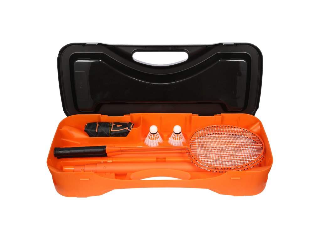 Kufříková sada pro badminton NILS ZSB-1 obsahuje skládací síť, 2 rakety a 2 letky. Teleskopické tyče se zasunou do kufříku, který slouží jako základna konstrukce. Po rozložení má síť délku 328 cm a je ve výšce 155 cm.