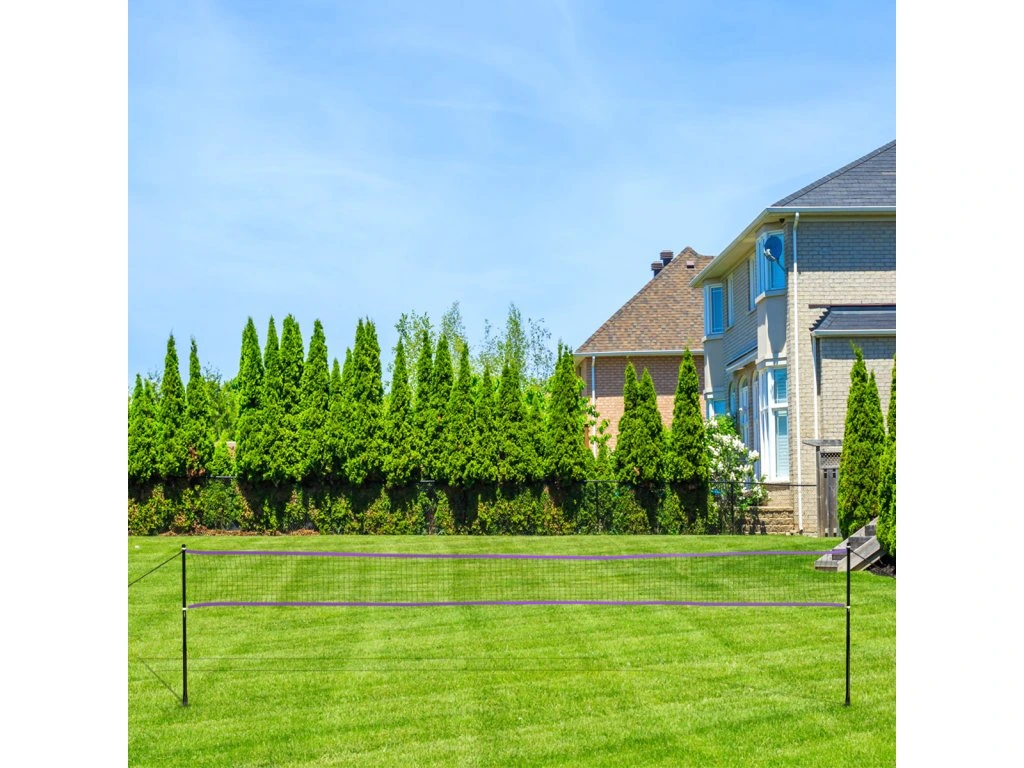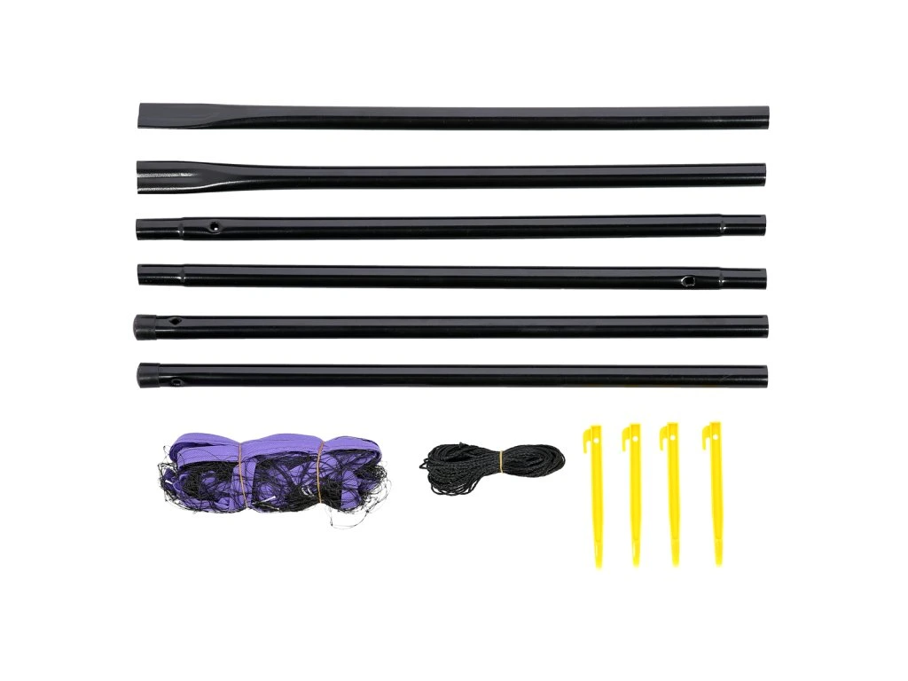 Bude to skvělý doplněk pro klasické venkovní hry. Síť lze rozložit a složit během několika minut bez použití nářadí. Součástí balení je síť, 2 skládací sloupky, napínací šňůry, kolíky a praktický vak pro přenášení.