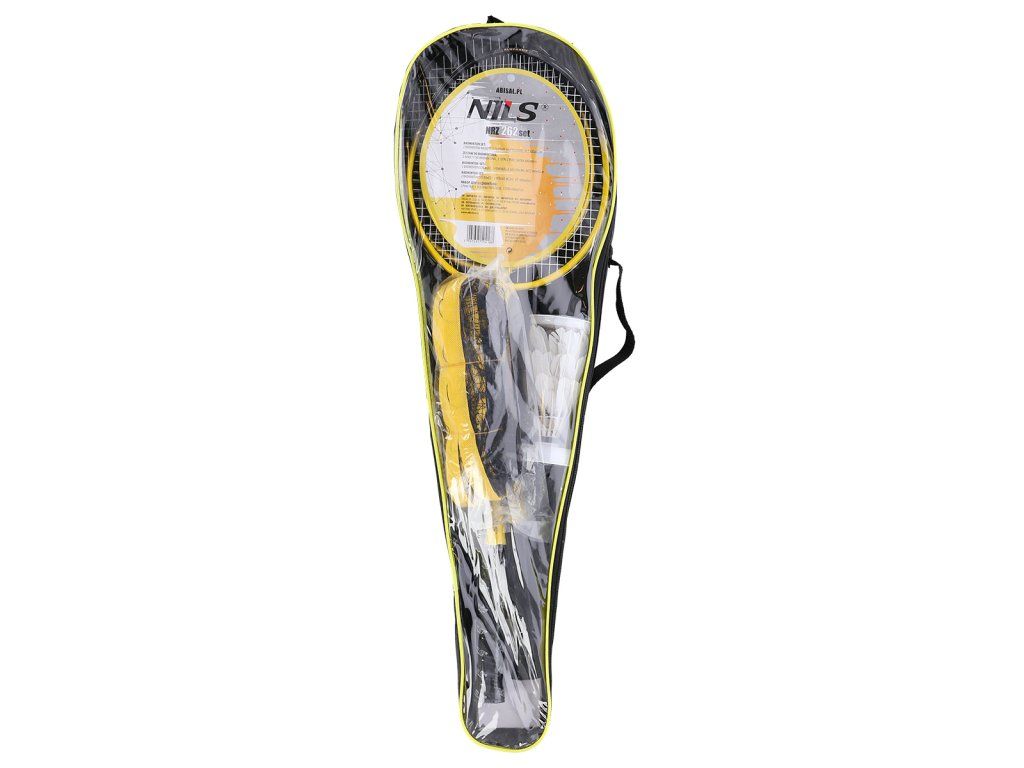 Badmintonová sada NILS NRZ262 obsahuje vše potřebné pro téměř okamžité zahájení hry. V praktickém obalu s popruhem přes rameno naleznete 2 rakety, 2 teleskopické sloupky, síť, napínací šňůry s kolíky a 3 letky.