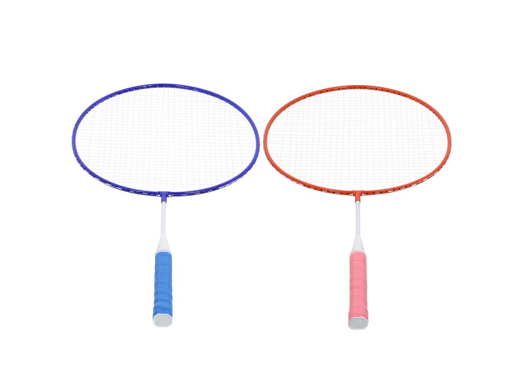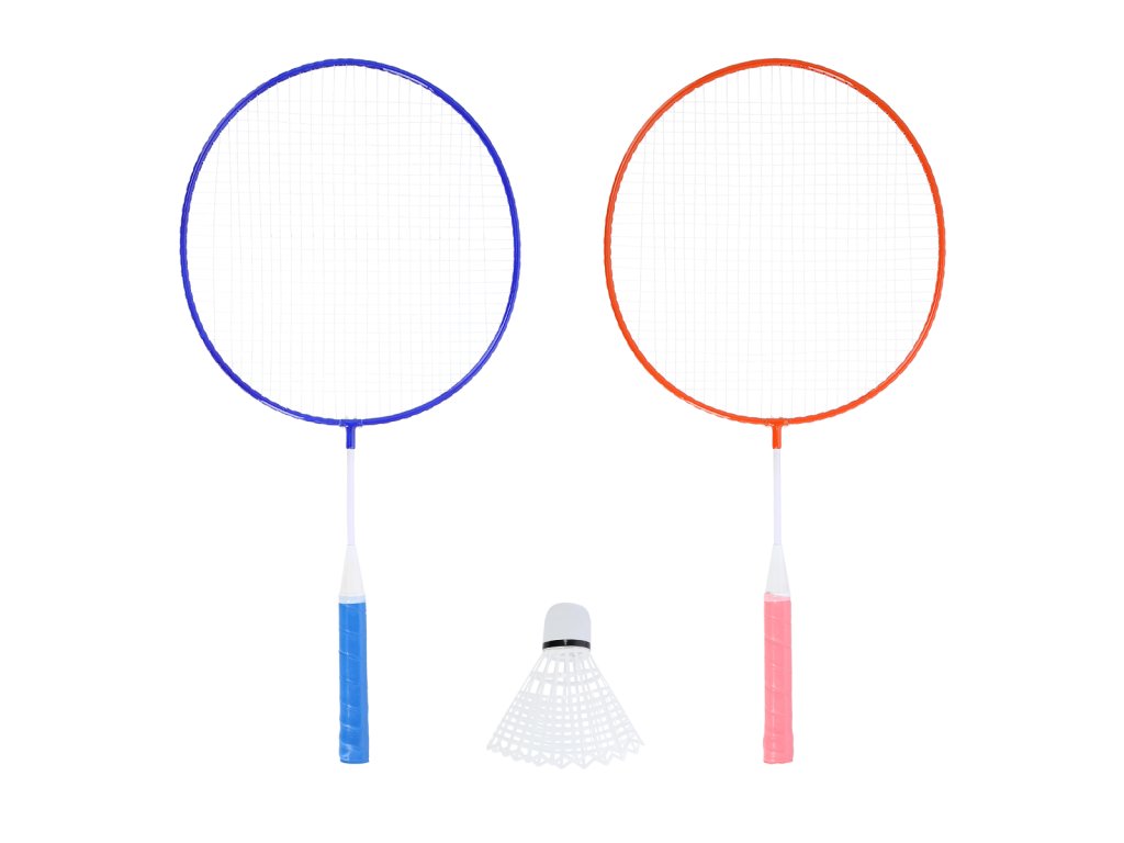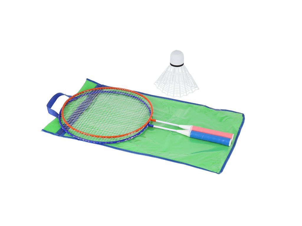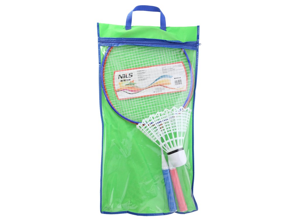 Juniorská badmintovová sada NILS NR302. Sada obsahuje 2 rakety, 1x letku a síťovaný obal.