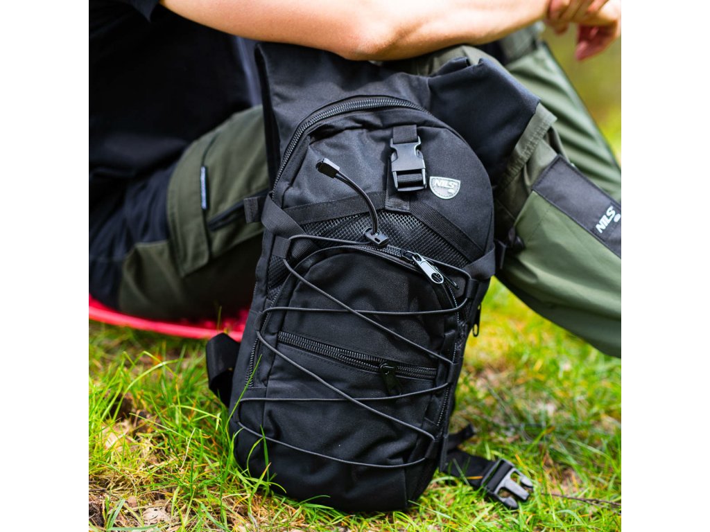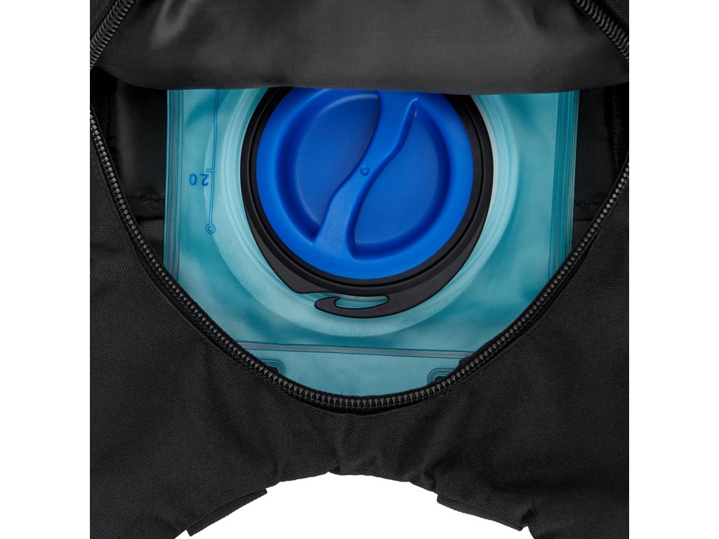 Hlavní komora batohu je opatřena přepážkou, v horní části se nachází 2 karabiny pro zavěšení hydrovaku (není součástí dodávky). Hadičku hydrovaku lze vyvést průvlaky na pravé i na levé straně pod ramenními panely. Na hlavní komoře se nacházejí další úložné prostory a to velká síťovaná kapsa s popruhem a přezkou - menší otevřená, síťovaná kapsa - 2. komora na zip - kapsa na zip (například pro mobilní telefon a peněženku) a gumová šňůra s brzdičkou, pod kterou lze přenášet například cyklistickou helmu, nebo karimatku. Po stranách batohu se nachází kompresní popruhy, které stahují hlavní komoru a obě síťované kapsy. Na horní straně je robustní ucho pro pohodlné přenášení batohu v ruce. Zadní strana a ramenní popruhy jsou polyesterové bez polstrování. Na popruzích je gumové poutko k provlečení hadičky hydrovaku a hrudní popruh, ten je výškově a délkově nastavitelný. Bederní popruh s robustní přezkou má šířku 3,5 centimetru.