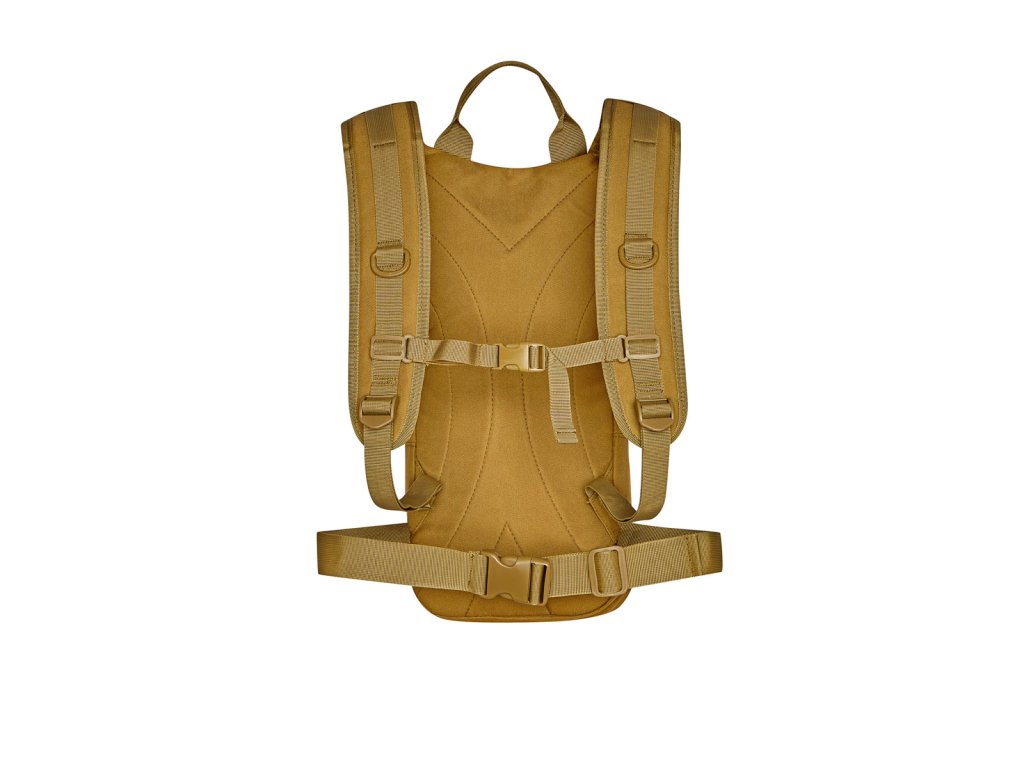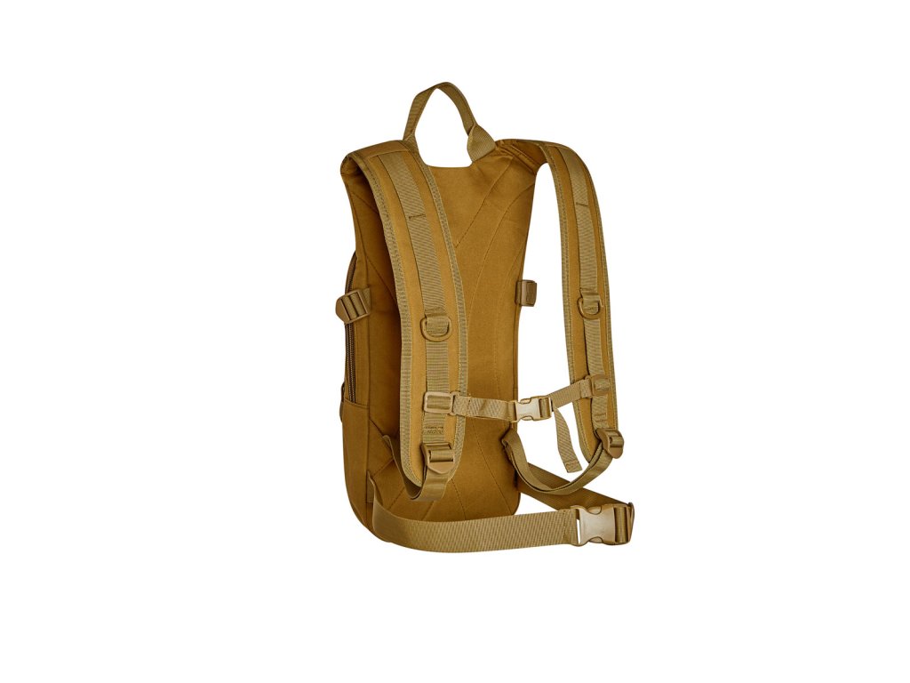 Hlavní komora batohu je opatřena přepážkou, v horní části se nachází 2 karabiny pro zavěšení hydrovaku (není součástí dodávky). Hadičku hydrovaku lze vyvést průvlaky na pravé i na levé straně pod ramenními panely. Na hlavní komoře se nacházejí další úložné prostory a to velká síťovaná kapsa s popruhem a přezkou - menší otevřená, síťovaná kapsa - 2. komora na zip - kapsa na zip (například pro mobilní telefon a peněženku) a gumová šňůra s brzdičkou, pod kterou lze přenášet například cyklistickou helmu, nebo karimatku. Po stranách batohu se nachází kompresní popruhy, které stahují hlavní komoru a obě síťované kapsy. Na horní straně je robustní ucho pro pohodlné přenášení batohu v ruce. Zadní strana a ramenní popruhy jsou polyesterové bez polstrování. Na popruzích je gumové poutko k provlečení hadičky hydrovaku a hrudní popruh, ten je výškově a délkově nastavitelný. Bederní popruh s robustní přezkou má šířku 3,5 centimetru.