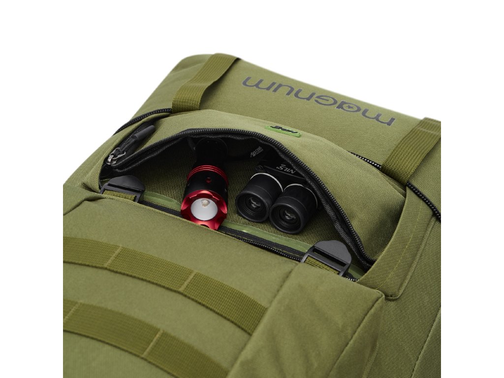 Se svou obrovskou kapacitou 100 litrů, hlavním oddílem s přepážkou a řadou kapes na zip vám tento taktický batoh umožní precizně organizovat vaše vybavení. A jedinečně, díky kreativnímu systému spodního zipu, lze Magnum zkrátit, což umožňuje nakonfigurovat batoh tak, aby vyhovoval vašim aktuálním potřebám a zmenšit jeho objem, když není potřeba plná kapacita.