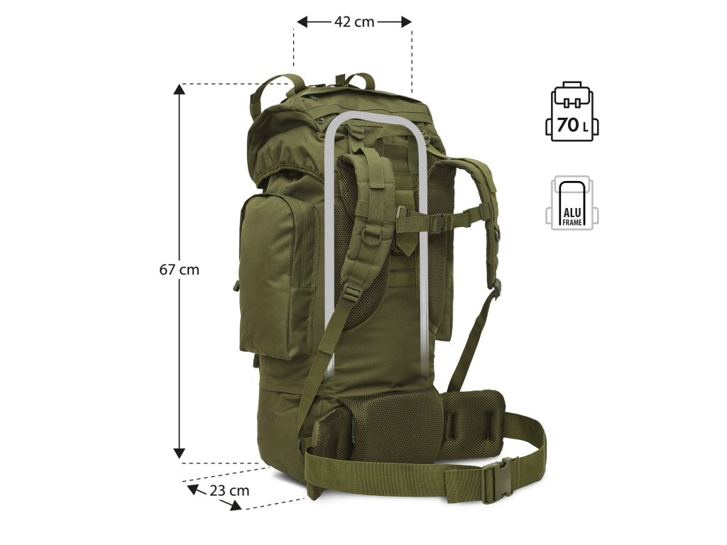 Armádní batoh NC3901 Eagle od společnosti NILS Camp je volbou pro každého, kdo si cení spolehlivosti, funkčnosti a připravenosti do jakýchkoli podmínek. S úctyhodným objemem 70 litrů se do něj snadno vejde veškeré vybavení potřebné během několikadenní expedice - od oblečení a jídla až po stan a karimatku. Je ideální volbou pro milovníky trekkingu, bushcraftu a survivalu, stejně jako pro ty, kteří se chystají na expedice v náročném horském nebo lesním terénu.