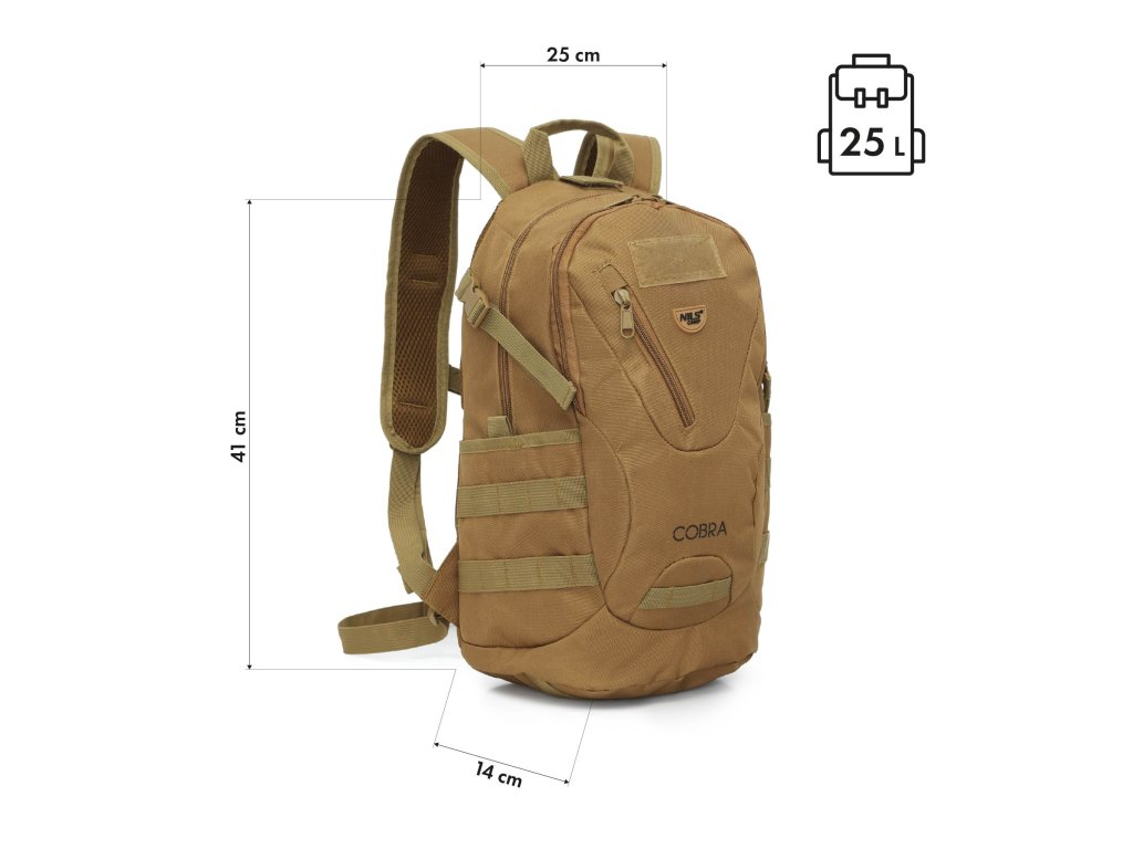 NC3905 Cobra je kompaktní taktický batoh s objemem 25 litrů, který je ideální pro každodenní použití, při procházkách městem, výletu do lesa a také jako EDC (Everyday Carry) - batoh na každodenní nošení nejnutnějších věcí. Navzdory svým malým rozměrům nabízí kompletní balíček funkčních řešení a moderní vojenský vzhled.