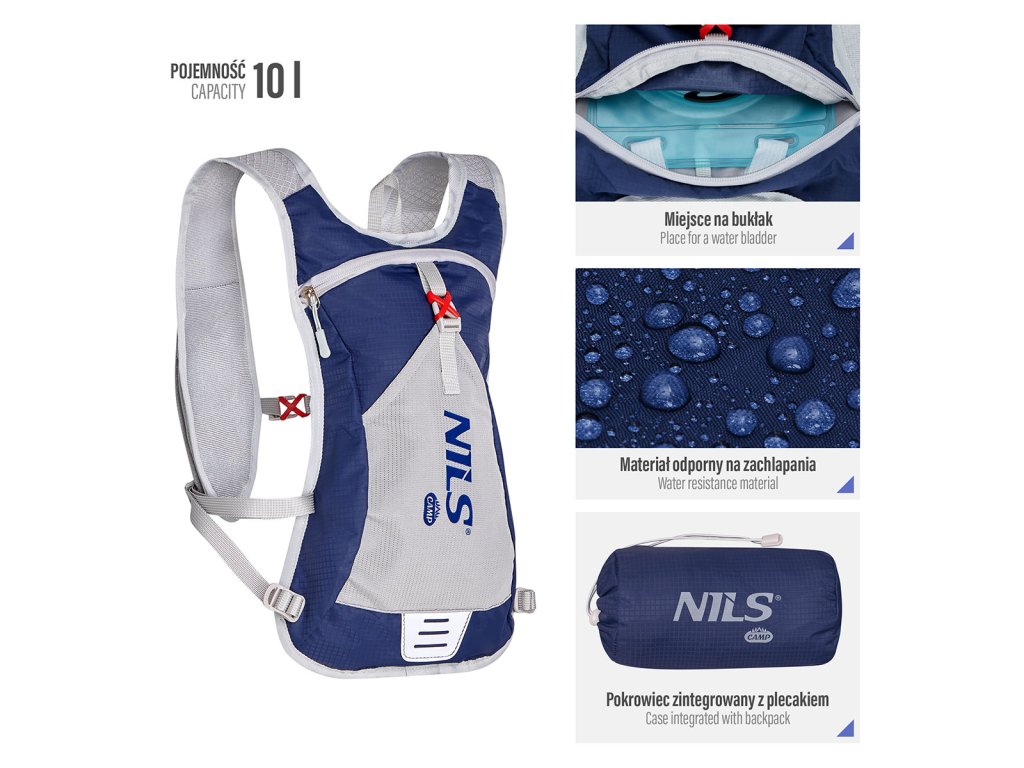 NILS Camp NC1708 Tripper je lehký batoh o objemu 10 litrů, který je ideální na jednodenní výlety, dlouhé procházky, jízdu na kole nebo běhání.