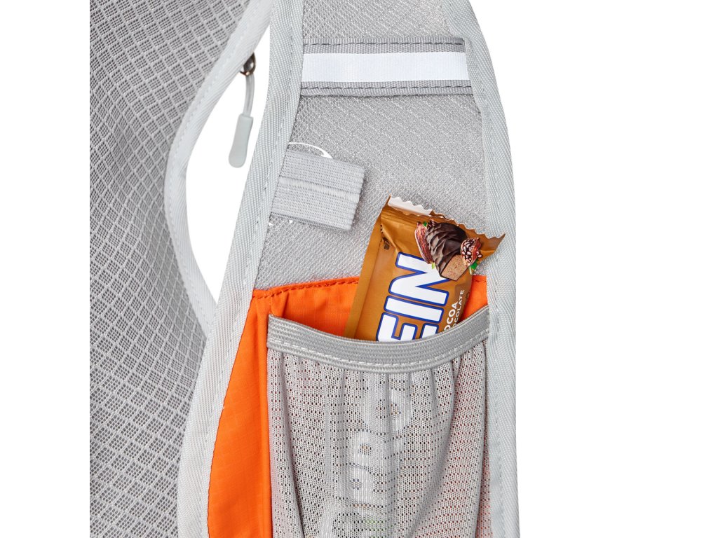 Hlavní komora batohu je opatřena přepážkou, v horní části se nachází poutko s karabinou, na které visí oddělitelný vak, do kterého lze batoh složit a můžete jej mít jako záložní batoh ve svém hlavním zavazadle. Vedle poutka nalezneme 2 suché zipy pro zavěšení hydrovaku (není součástí dodávky). Hadičku hydrovaku lze vyvést průvlaky na pravé i na levé straně pod ramenními panely. Přední síťovaná kapsa se uzavírá na přezku. Síťovina je podšitá nylonem, takže kapsa není elastická. Pod kapsou je reflexní panel, ke kterému si můžeme pomocí řemínku připnout vybavení (například helmu). Na horní straně batohu je poutko pro snadné přenášení Trippera v ruce. Záda a ramenní popruhy jsou vyrobeny ze síťoviny doplněné o prodyšnou pěnu, která zvyšuje prodyšnost panelu a záda se budou méně potit. Ramenní popruhy jsou opatřeny reflexními pásky, gumovou smyčkou pro protažení hadičky od hydrovaku a pružnými kapsami. Na levém popruhu se navíc nachází kapsička s průhlednou čelní stranou, do které lze uložit například kartičku pro případ ztráty, startovní číslo a podobně. Popruhy jsou spojeny řemínkem s plastovou přezkou.