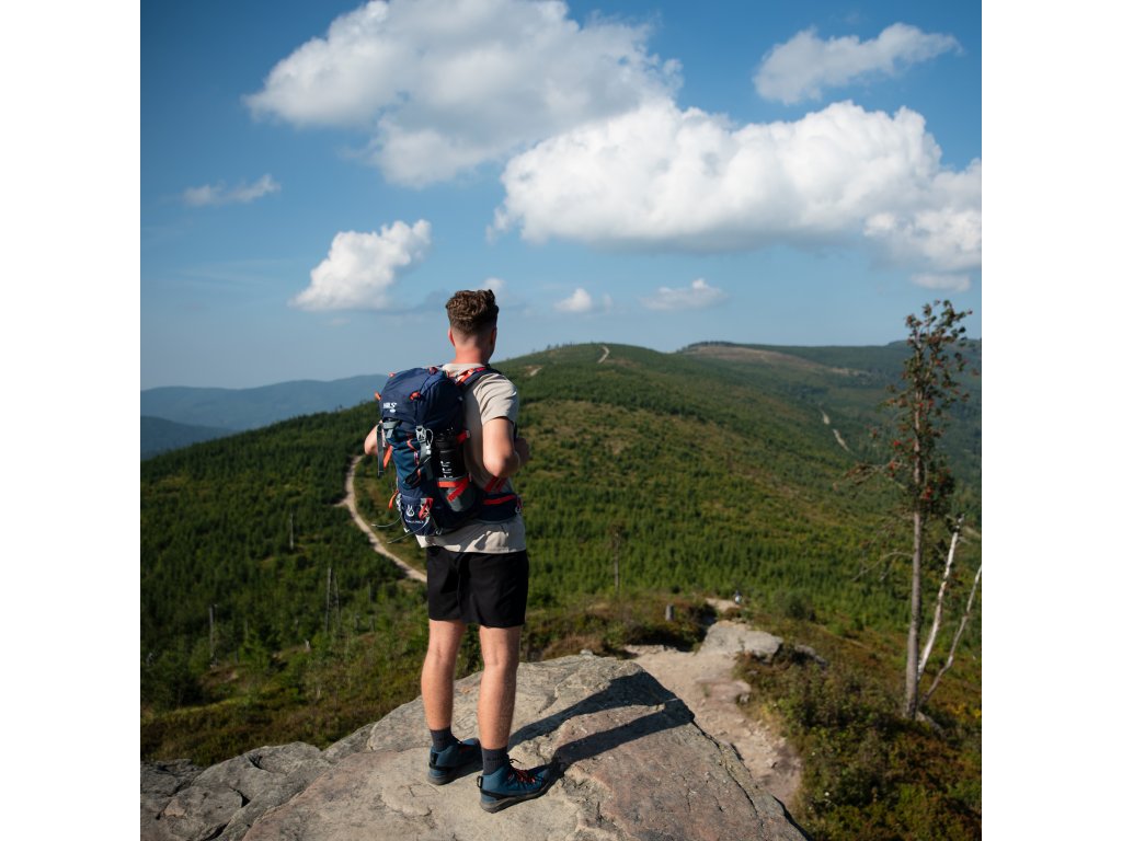 Na přezce hrudního popruhu je integrovaná záchranná píšťalka, která zvyšuje bezpečnost uživatele. Přídaná poutka umožňují připevnit například trekové hole nebo jiné příslušenství. Batoh má také dvě boční kapsy ze síťoviny a kapsy na zip na bederním pásu, ideální na telefon nebo jiné drobnosti.