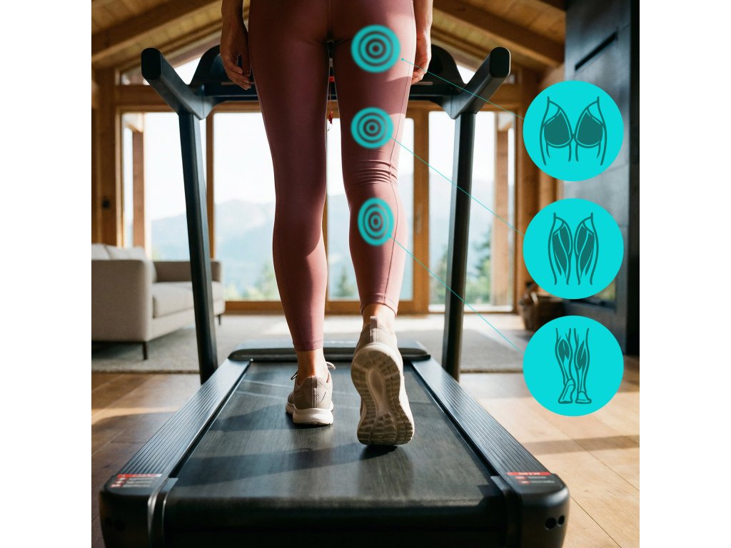 Vnitřní běžecká plošina se systémem tlumení účinně absorbuje nárazy, čímž snižuje zatížení kloubů a zvyšuje komfort i při delších trénincích.