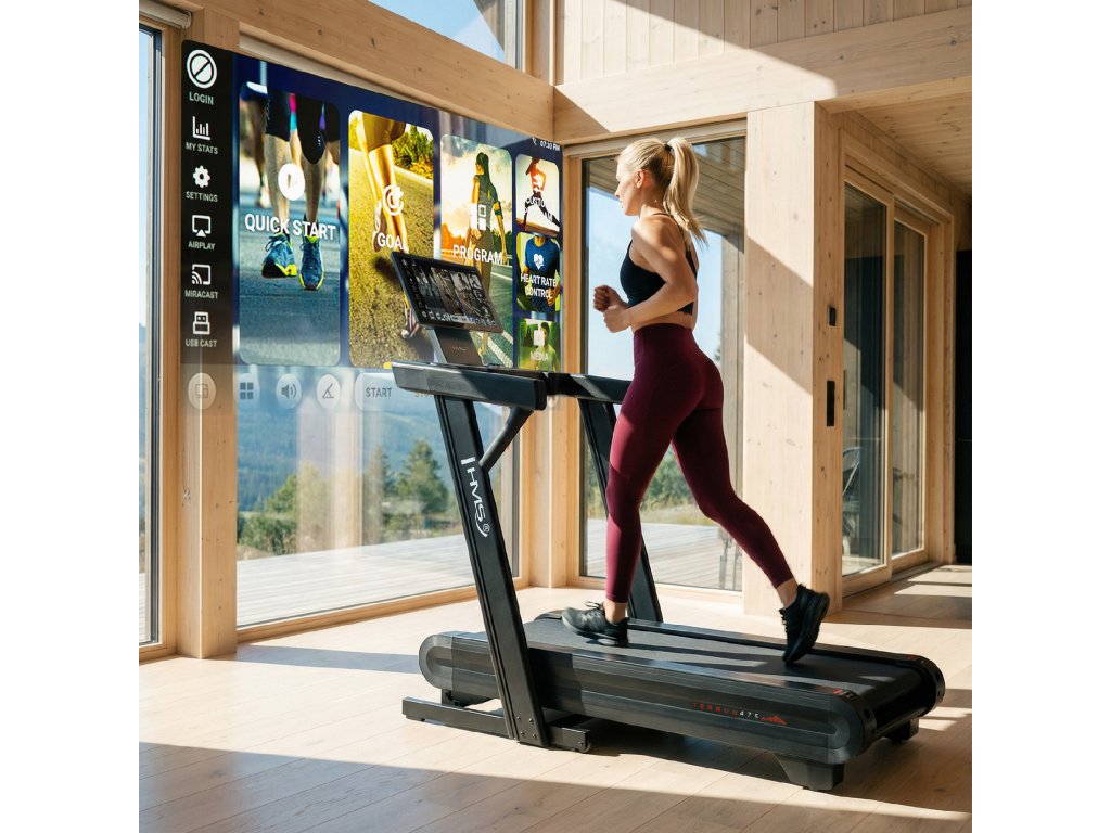 TERRUN475 je víc než jen běžecký pás – je to kompletní tréninkové centrum s multimediální výbavou: