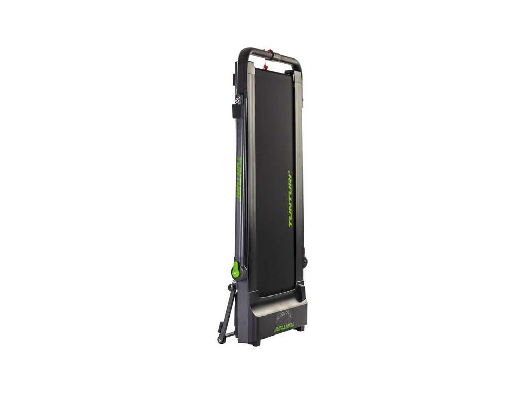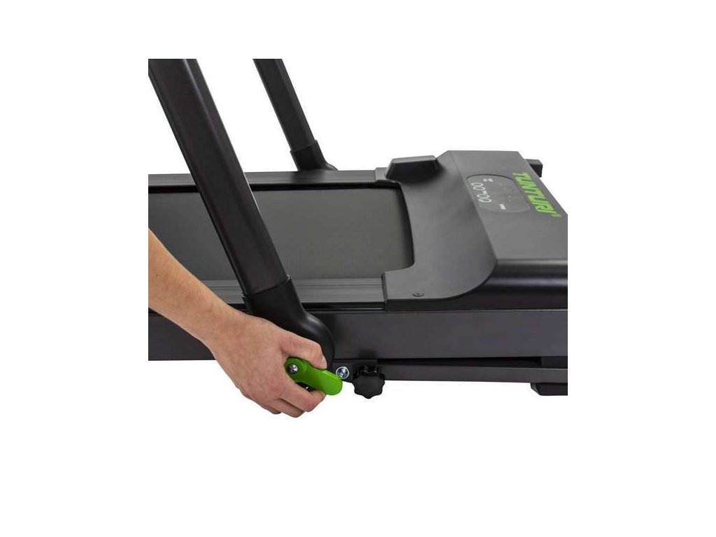 Pro úspora místa je možné stroj velmi jednoduše složit do horizontální polohy a snadno uklidit např. pod postel nebo za skříň. Nemusíte tak mít obavy, že by vám stroj zabíral moc místa v případě, kdy zrovna neběháte. Pro jednoduché přemisťování po místnosti je pás vybaven transportními kolečky. Ve složeném stavu má pás na výšku pouhých 16 cm.