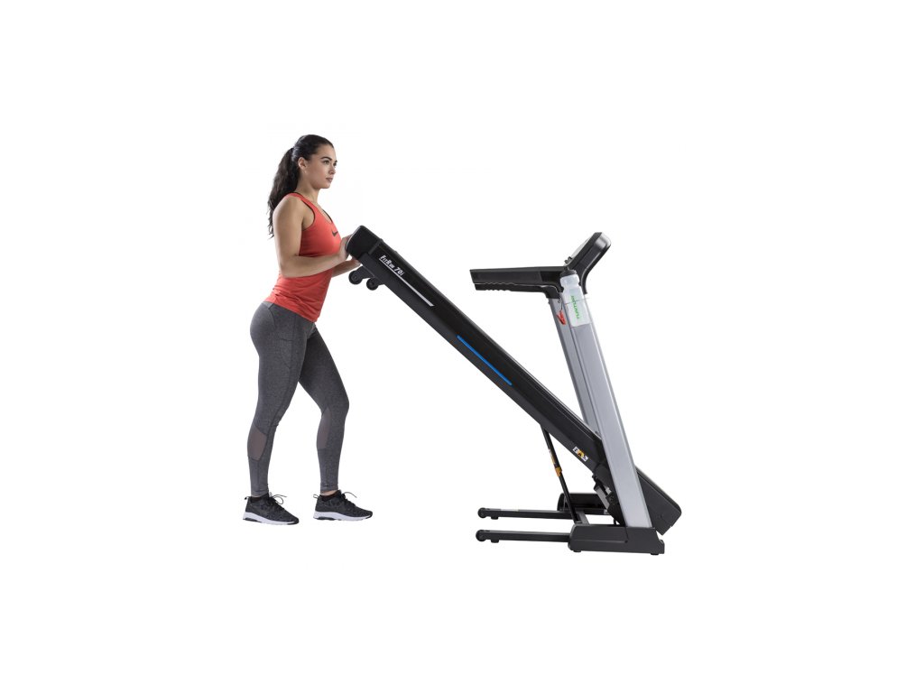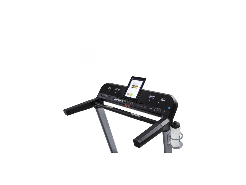 Pás disponuje držákem na tablet, držákem na lahev s pitím a transportními kolečky. Pokud běhací pás zrovna nepoužíváte lze ho jednoduše složit do vertikální polohy, která šetří místem.