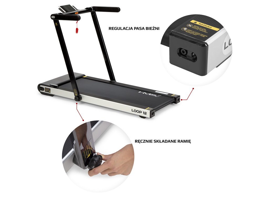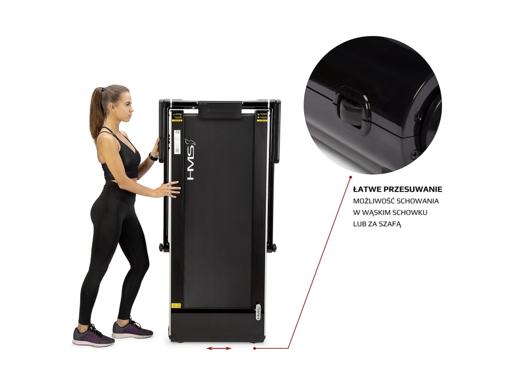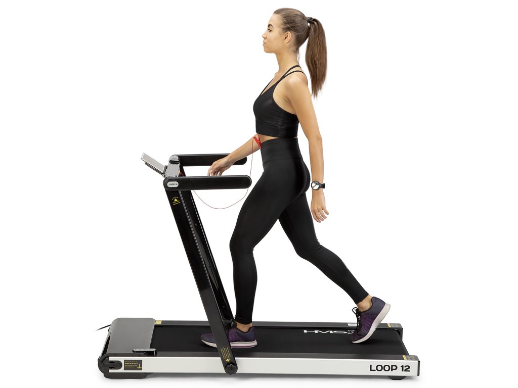 Elektrický běžecký trenažér HMS LOOP12 má moderní design a po složení zabírá velice málo místa.