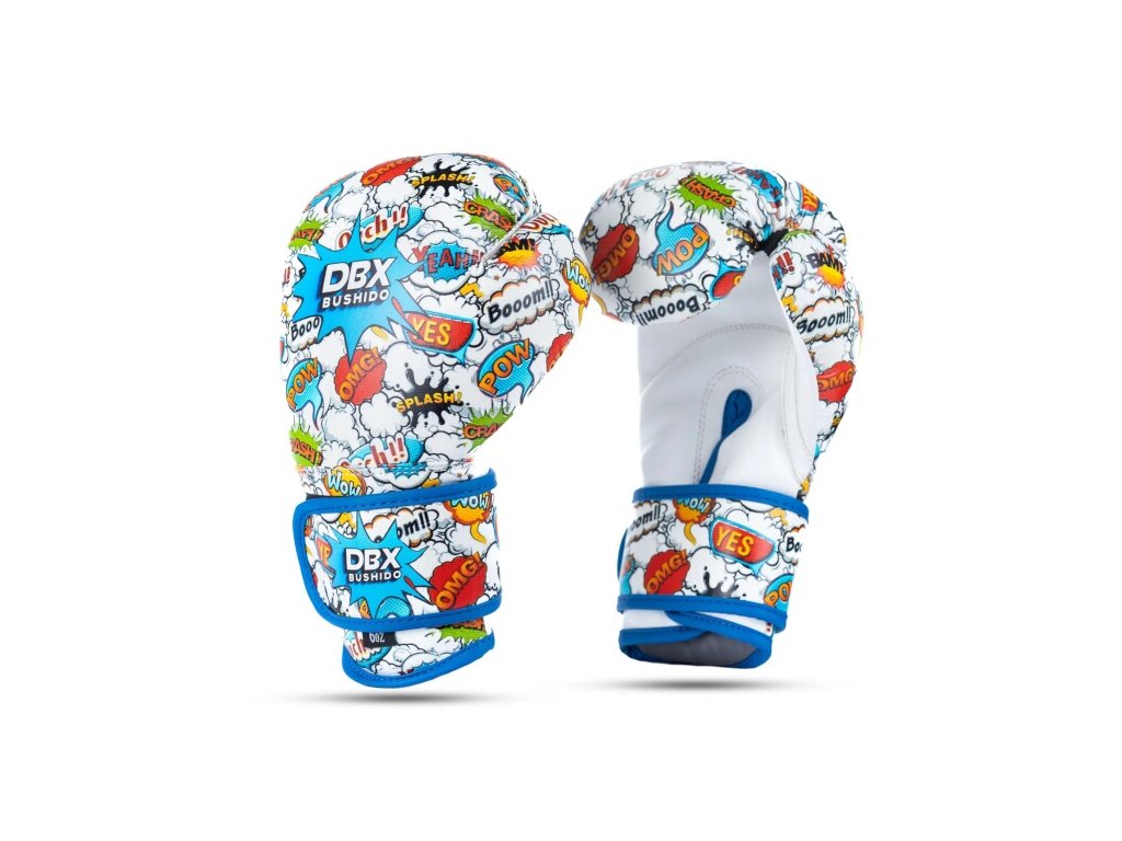 Bezpečnost, pohodlí a odolnost - rukavice DBX BUSHIDO ARB-Kids byly vyvinuty speciálně pro nejmladší adepty bojových sportů. Díky barevnému provedení v komiksovém stylu trénují děti s ještě větší radostí a profesionální konstrukce jim poskytuje maximální ochranu. Díky palci spojenému s rukavicí, široké manžetě na suchý zip pro stabilizaci zápěstí a ruční šití jsou ideální volbou pro mladé bojovníky, kteří chtějí rozvíjet své dovednosti v boxu, kickboxu nebo Muay Thai.