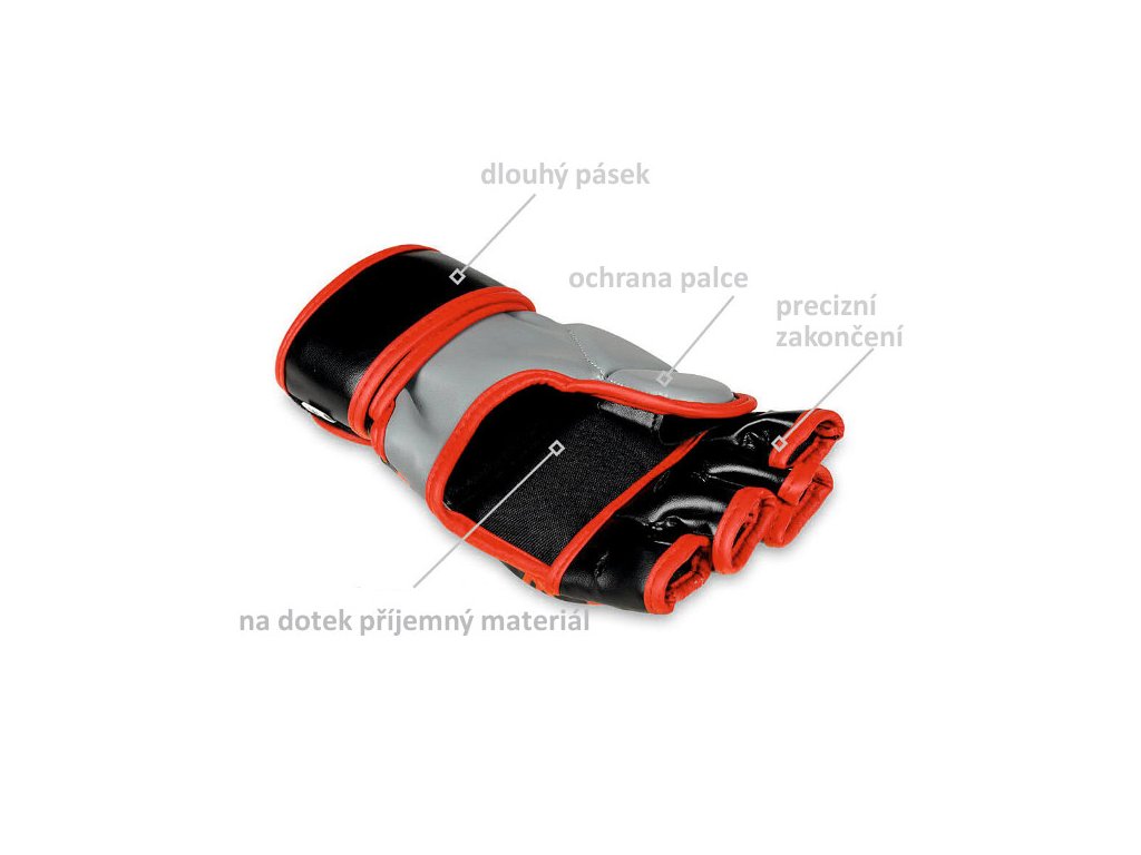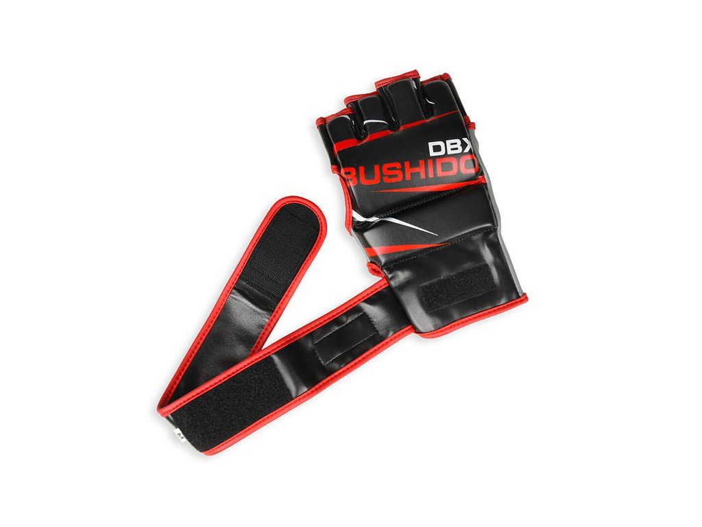 MMA a tréninkové rukavice DBX BUSHIDO E1V6 jsou vyrobeny ze zpevněné, umělé kůže se zvýšenou elasticitou, vyplněny jsou pěnou. Díky otevřené vnitřní straně vám rukavice umožňují zachovat přilnavost a ruka dokonale větrá. Navíc je rukavice vybavena ochranným překryvem hřbetu palce a dlouhým, širokým popruhem pro stáhnutí zápěstí, aby se minimalizovalo případné riziko zranění. Vnitřní strana je obšita hladkým materiálem pro snadné nasazení a sundání i během náročného tréninku. Anatomický tvar rukavice ve spojení se zvýšenou elasticitou umělé kůže zajistí jejich komfortní užívání.