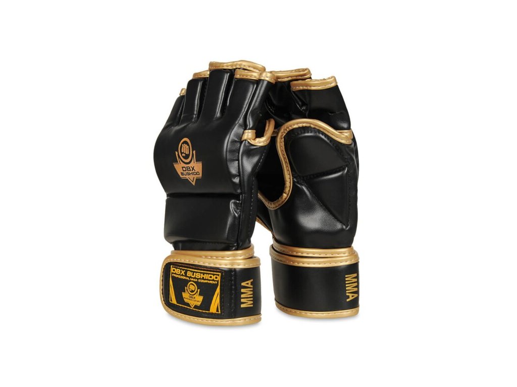 MMA a tréninkové rukavice DBX BUSHIDO E1v8 jsou vyrobeny ze zpevněné, umělé kůže se zvýšenou elasticitou, vyplněny jsou pěnou. Díky otevřené vnitřní straně vám rukavice umožňují zachovat přilnavost a ruka dokonale větrá. Navíc je rukavice vybavena ochranným překryvem hřbetu palce a dlouhým, širokým popruhem pro stáhnutí zápěstí, aby se minimalizovalo případné riziko zranění. Vnitřní strana je obšita hladkým materiálem pro snadné nasazení a sundání i během náročného tréninku. Anatomický tvar rukavice ve spojení se zvýšenou elasticitou umělé kůže zajistí jejich komfortní užívání.