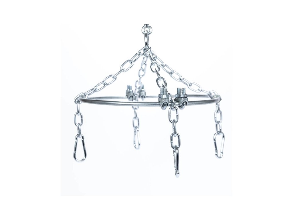 Rozpěrný kruh DBX BUSHIDO R40.2 se skládá ze šroubované obruče a 4 svorek, pomocí kterých se kruh zafixuje ke 2 protilehlým řetězům. Šroubovanou obruč lze rozebrat a provléct samotnými oky řetězů.