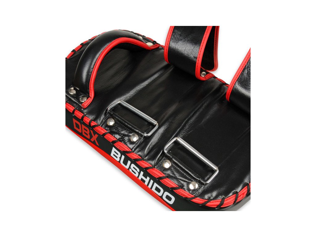 Profesionální blok DBX BUSHIDO ARS-1201a je určen především na bojová umění a sporty, ve kterých se používají kopy. Je vyroben z kvalitní, přírodní kůže, která je upravená tak, aby odolávala poškození během tréninku. Terč je vyplněn paměťovou pěnou vyznačující se velmi dobrou absorpci úderů a delší životností oproti běžným výplním. Blok disponuje zesílenými švy, které garantují vysokou odolnost vůči roztržení. Na zadní straně se nachází madlo a dva řemeny vybavené suchým zipem pro stabilní a pevné uchycení k paži. Blok je tak ideálním nástrojem k nácviku opravdu silných kopů a úderů.