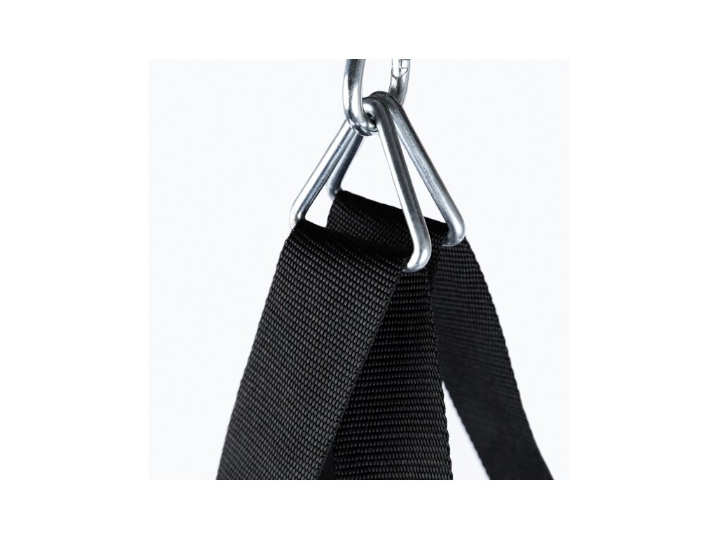 Pytel je vybaven 4 pevnými popruhy zakončenými ocelovými oky trojúhelníkového tvaru. Popruhy mají celkovou nosnost 200 kilogramů azajišťují odolnost a bezpečnost při tréninku. Trojúhelníková oka zajišťují rovnoměrné protažení popruhů, nedeformují je a tím prodlužují jejich životnost. Popruhy jsou překryty manžetou z plavilu, který je chrání před poškozením během opravdu intezivních tréninků. Manžeta ve spodní straně pytle zase zvyšuje jeho pevnost a odpolnost vůči protržení.