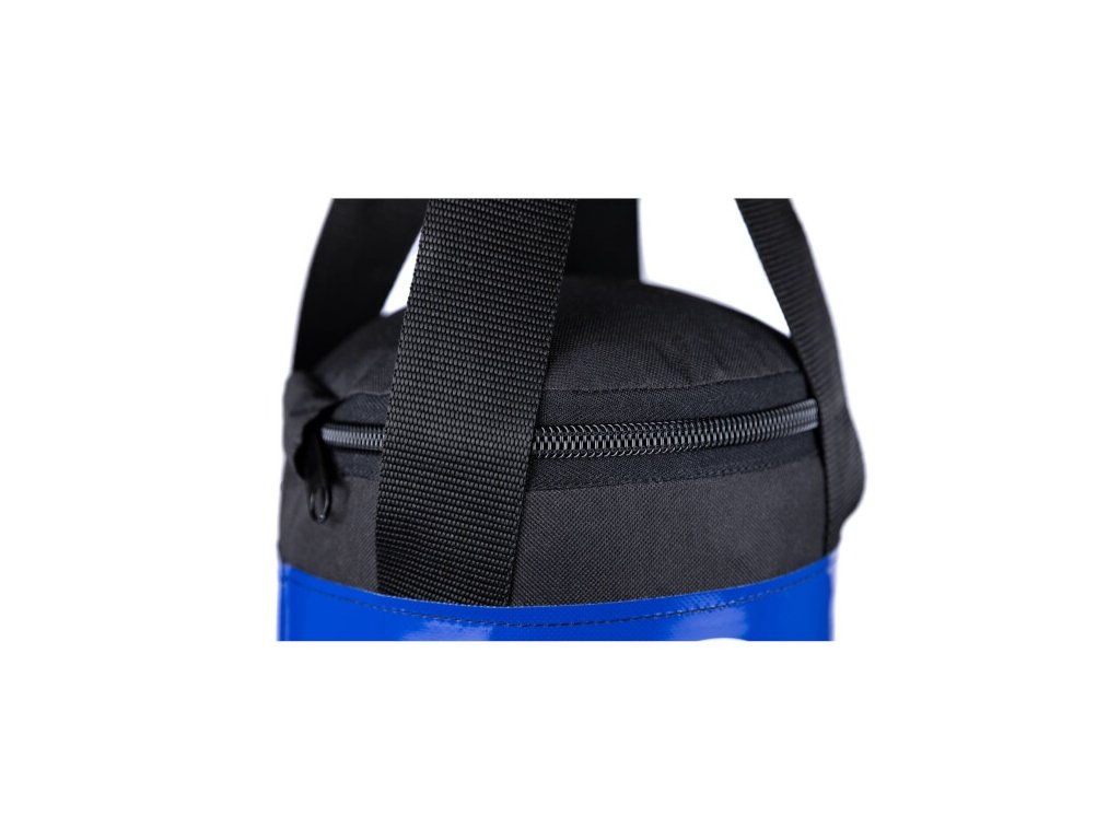 Pytel je vybaven 4 pevnými popruhy zakončenými ocelovými oky trojúhelníkového tvaru. Popruhy mají celkovou nosnost 200 kilogramů azajišťují odolnost a bezpečnost při tréninku. Trojúhelníková oka zajišťují rovnoměrné protažení popruhů, nedeformují je a tím prodlužují jejich životnost. Popruhy jsou překryty manžetou z plavilu, který je chrání před poškozením během opravdu intezivních tréninků. Manžeta ve spodní straně pytle zase zvyšuje jeho pevnost a odpolnost vůči protržení.