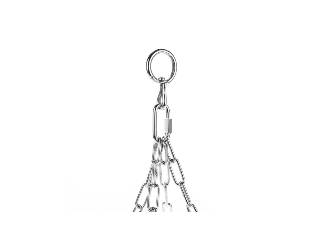 Spolu s pytlem dostanete sadu řetězů a otočné oko, které zabraňuje kroucení řetězů během tréninku. Každý jednotlivý řetěz má svařované články, díky čemuž je certifikován pro zatížení 160 kg. Použití 4 řetězů zajišťuje odolnost při zatížení až 640 kg! Mezi nosné popruhy pytle a řetězy jsou vložená trojúhelníková oka, která na rozdíl od kruhových ok zatěžují popruhy rovnoměrně.