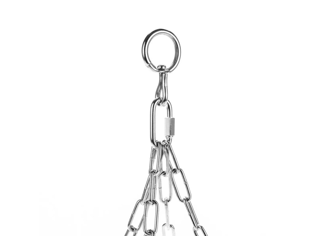 - Řetězy těžké třídy – svařované, zakončené trojúhelníkovými oky a vybavené otočným závěsem, který eliminuje jejich kroucení při tréninku.