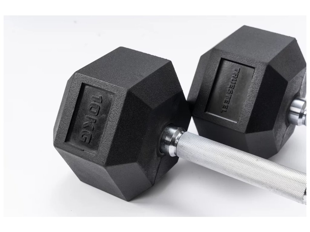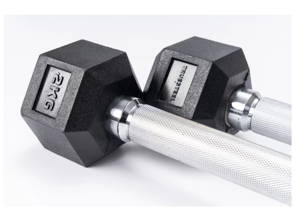 Úchop, který mění pravidla hry Většina hexagonálních činek na trhu má zakřivenou rukojeť s minimálním vroubkováním, a kvalitou úchopu se nevyrovnají ani řadě kulatých jednoruček, natož pak třeba olympijským osám! Proto jsme pro Vás vytvořili nové hexagonální jednoručky TrueGrip - činky s úchopem, který znáte z těch nejlepších olympijských os. Naše jednoručky mají plně vroubkovanou plochu o délce 12 cm, na kterou se Vám pohodlně vejde celá dlaň. Díky tomu se můžete chytit, kde potřebujete, a Váš úchop bude stále pevný. A jaký typ vroubkování jsme zvolili? Přesné vroubkování ve tvaru sopky "Volcano", tedy v současnosti ten nejefektivnější typ vroubkování. Nabízí velkou styčnou plochu, a zároveň Vám při cvičení nerozškrábe ruce, jako se často stává s vroubkováním typu mountain. Jednoručky mají rovné vroubkované madlo s konstantním průměrem, většina Vaší dlaně je tak při cvičení v kontaktu s vroubkovaným povrchem. To Vám zajistí bezpečný a silný úchop, a jistotu při každém zdvihu. Perfektně rovný úchop Rovná vroubkovaná rukojeť Vám zajišťuje silný a pohodlný úchop. Navíc má madlo optimální tloušťku úchopu pro dokonale pevný stisk 28 - 30 mm (dle hmotnosti činky). Šestihranný tvar Vsaďte na bezpečnost s hexagonálními činkami! Díky svému tvaru se Vám v posilovně nikdy nezakutálejí tam, kam nemají. Navíc se dají dobře položit na ramena, což ocení zvlášť strongmani, vzpěrači a crossfiteři. Vroubkování "Volcano" Volcano knurling už není jen na našich nejluxusnějších osách! Toto vroubkování má velkou styčnou plochu, o kterou se může pokožka Vaší ruky pohodlně opírat, a zároveň není tak nepříjemně ostré jako vroubkování ve tvaru hory "Mountain". Kvalitní guma Jednoručky jsou vyráběny z pečlivě zvolené směsi té nejkvalitnější přírodní a syntetické gumy. Proto naše činky nemají nepříjemný zápach, který mívají činky vyráběné z recyklované gumy. Silná gumová vrstva Díky pogumování činky snesou jakékoliv nárazy, šetří vaší podlahu a nedělají takový hluk. Naše jednoručky jsou opatřeny extra silnou vrstvou gumy, která se Vám narozdíl od běžných Hexa činek jen tak neprodře. Zřetelné značení váhy Abyste ihned našli váhu, kterou potřebujete. Už žádné počítání kovových kotoučů na obyčejných jednoručkách. Váhově vyvážené Všechny naše jednoruční činky jsou podrobeny přísné kontrole váhy. Jedině přesně váhově vyvážené jednoručky zajistí, že cvičíte souměrně a nevytváříte si disbalance. Činka odolná skrz naskrz Kvalitu jednoruček ovlivňuje několik faktorů. Kromě kvality vstupních materiálů pro výrobu je hlavně důležitá technologie výroby jednoruček. Hexagon jednoruční činky se mohou vyrobit pomocí 3 základních technologií: Madlo se navaří ručně k zátěžovým šestihranům. Madlo se frikčně svaří k zátěžovým šestihranům. Madlo se prostrčí skrz zátěžový šestihran. Nejodolnějším způsobem výroby je madlo prostrčit skrz naskrz zátěžovým šestihranem a až potom ho přivařit. Při tomto způsobu výroby nehrozí odpadnutí zátěžového šestihranu od madla. Dříve se Vám podaří madlo ohnout. Tento způsob je jednak nejsložitější a jednak i finančně nejnákladnější. Všechny naše StrongGear hexagonální jednoručky TrueGrip se vyrábějí prostrčením madla skrz naskrz zátěžovým šestihranem. Tímto způsobem pro Vás zajišťujeme maximální přesnost a odolnost jednoruček. Varianta setu: Set obsahuje páry činek těchto vah: 1 kg až 10 kg 1kg, 2kg, 3kg, 4kg, 5kg, 6kg, 7kg, 8kg, 9kg, 10kg 12,5 kg až 30 kg 12,5kg, 15kg, 17,5kg, 20kg, 22,5kg, 25kg, 27,5kg, 30kg 32,5 kg až 40 kg 32,5kg, 35kg, 37,5kg, 40kg 42,5 kg až 50 kg 42,5kg, 45kg, 47,5kg, 50kg 52,5 kg až 60 kg 52,5kg, 55kg, 57,5kg, 60kg 100% garance spokojenosti Veškeré zakoupené zboží můžete do 30 dnů zdarma vrátit bez udání důvodu. To znamená, že zboží, které chcete vrátit, u Vás zdarma vyzvedneme a peníze Vám vrátíme na Vámi zvolený účet do 2 pracovních dnů po navrácení zboží. Stačí nám napsat na info@truesteel.eu nebo zavolat na +420 777670947. Vrácení zboží má 2 podmínky - zboží musíte řádně zabalit, aby se při přepravě nepoškodilo a zakoupené zboží nesmí být poškozené. Garance slouží k prohlédnutí zboží, ne k jeho opakovanému použití.Doplňkové parametry