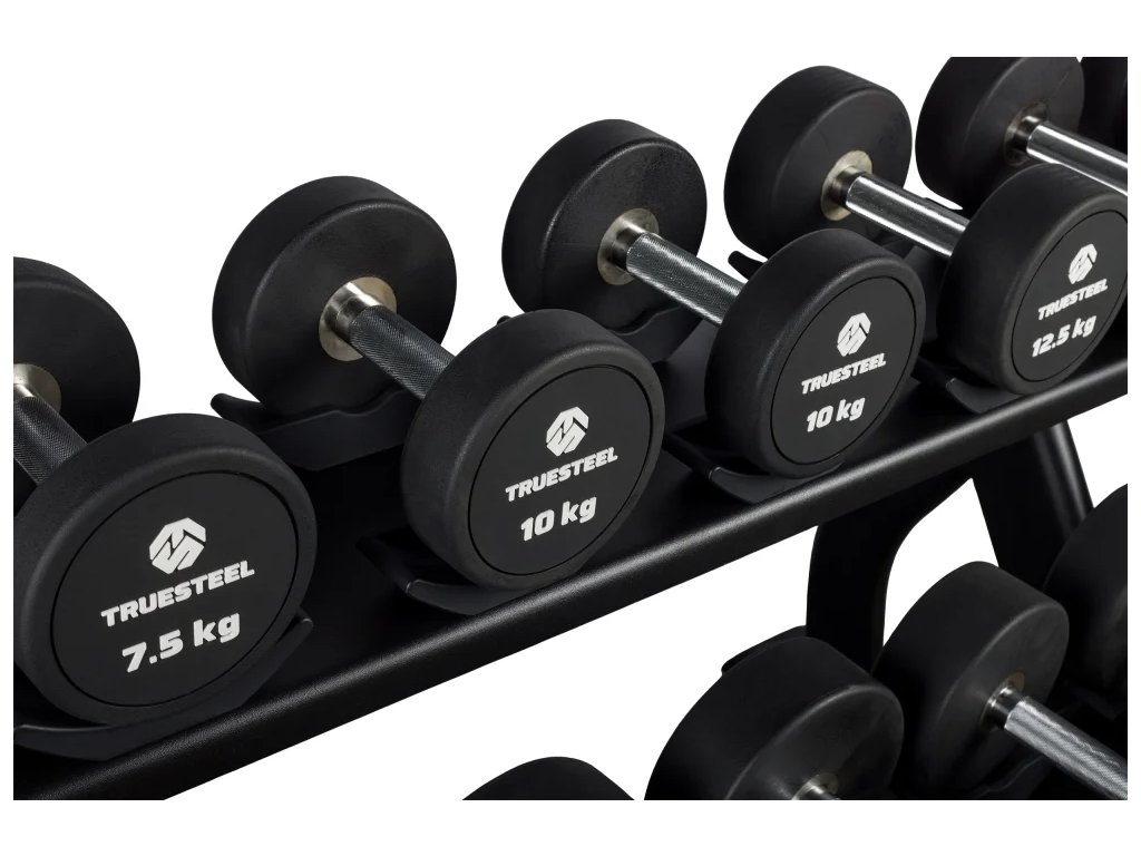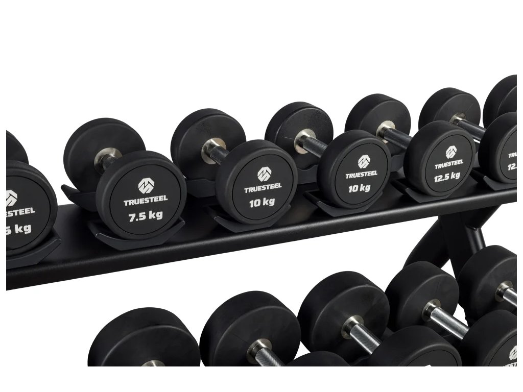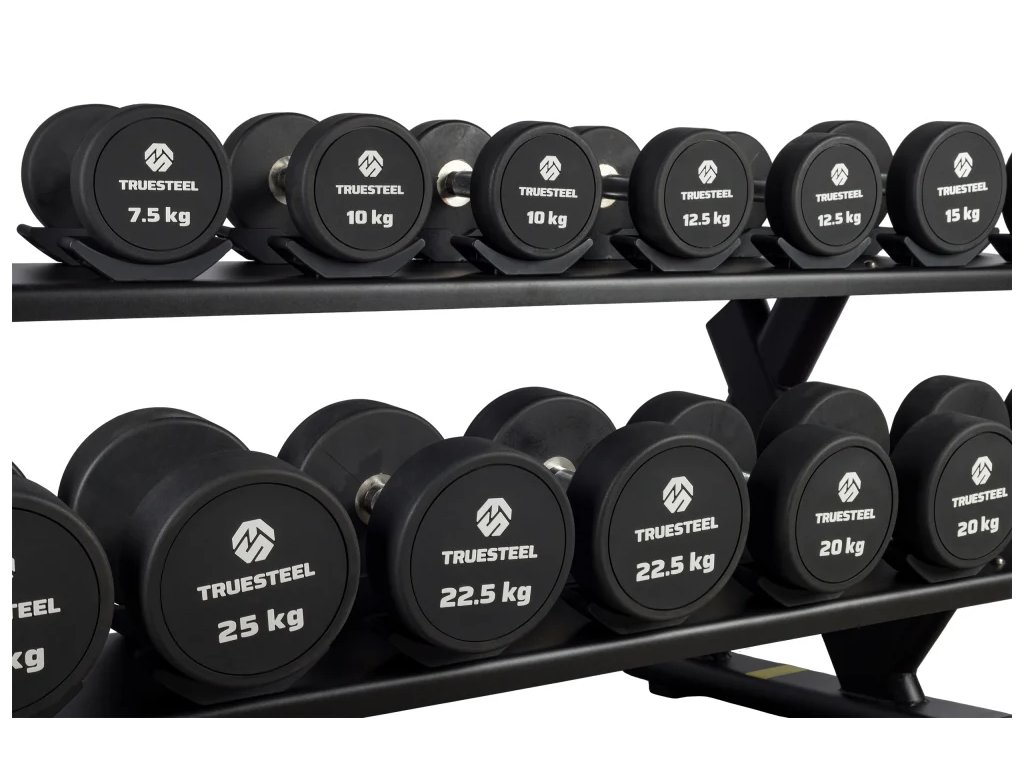 TPU jednoručky: Extrémní odolnost pro extrémní trénink Vybavení, bez kterého se vaše fitness skutečně neobejde - jednoruční činky z odolného termoplastického polyuretanu. Nabízíme vám široký výběr váhových kategorií (2,5 kg, 5 kg, 7,5 kg, 10 kg, 12,5 kg, 15 kg, 17,5 kg, 20 kg, 22,5 kg, 25 kg, 27,5 kg, 30 kg, 32,5 kg, 35 kg, 37,5 kg, 40 kg, 42,5 kg, 45 kg, 47,5 kg, 50 kg). Zapomeňte na gumové činky, které se rychle opotřebují. Naše jednoruční činky z extrémně odolného termoplastického polyuretanu (TPU) posunou váš trénink na novou úroveň. Vyrobené z termoplastického polyuretanu (TPU), tyto činky jsou nejen neuvěřitelně odolné, ale také pružné a světlostálé, což zaručuje jejich dlouhou životnost. Činky z jednotlivých váhových kategorií se prodávají po jednom kuse. V sadách jsou činky po dvou kusech od každé váhové kategorie. Jednoručky nejvyšší jakosti Naše TPU jednoručky jsou složeny ze tří částí. Mají jedno úchopové madlo a dva zátěžové kotouče. Madlo je k zátěžovým kotoučům strojově nalisováno, díky čemuž je zajištěna přesná hmotnost a rozměry. Všechny tři části jsou vzájemně posvařované a to z důvodu, aby se nikdy neuvolnily. Jedná se o nejlepší možné spojení, které existuje. Povrch úchopové části je ošetřen tvrdochromem. Ten zajišťuje perfektní ochranu a pevný úchop. Vaši klienti tak budou moci zvedat maximální váhy s jistotou a vy se nebudete muset zdržovat s nekonečným čištěním a údržbou. Naše TPU činky jsou navrženy pro minimální údržbu. Proč si vybrat naše TPU jednoručky? ✅ Přesná váha: Každá činka má přesně kalibrovanou hmotnost a optimální velikost. ✅ Špičkový termoplastický polyuretan: Prémiový TPU zaručuje maximální odolnost a dlouhou životnost. ✅ Činky, které nešpiní: TPU činky narozdíl od těch gumových nezanechávají žádné stopy na podlaze, oblečení ani zdech. ✅ Konec zápachu gumy: S našimi jednoručkami z polyuretanu se můžete rozloučit s nepříjemným zápachem gumy navždy. Chrání před poškozením Termoplastický polyuretan je velmi elastický a dobře tlumí nárazy. Přesto je mnohonásobně odolnější než guma, a to jak mechanicky, tak proti stárnutí. Optimální průměr a délka úchopu Všechny naše jednoruční činky mají stejný průměr (32,5 mm) i délku (15 cm) úchopu. To znamená, že si nemusíte neustále zvykat na jiné průměry a délky, jako je tomu u běžných jednoruček. Jemné vroubkování Příjemné a jemné vroubkování, které se drží tak skvěle, že Vám činky zůstanou v ruce jako přikované. Už žádné mozoly nebo sedřené dlaně do krve. Varianta setu: Set obsahuje páry činek těchto hmotností: 2,5 kg až 30 kg 2,5 kg, 5 kg, 7,5 kg, 10 kg, 12,5 kg, 15 kg, 17,5 kg, 20 kg, 22,5 kg, 25 kg, 27,5 kg, 30 kg 2,5 kg až 50 kg 2,5 kg, 5 kg, 7,5 kg, 10 kg, 12,5 kg, 15 kg, 17,5 kg, 20 kg, 22,5 kg, 25 kg, 27,5 kg, 30 kg, 32,5 kg, 35 kg, 37,5 kg, 40 kg, 42,5 kg, 45 kg, 47,5 kg, 50 kg 32,5 kg až 40 kg 32,5 kg, 35 kg, 37,5 kg, 40 kg 42,5 kg až 50 kg 42,5 kg, 45 kg, 47,5 kg, 50 kg 100% garance spokojenosti Veškeré zakoupené zboží můžete do 30 dnů zdarma vrátit bez udání důvodu. To znamená, že zboží, které chcete vrátit, u Vás zdarma vyzvedneme a peníze Vám vrátíme na Vámi zvolený účet do 2 pracovních dnů po navrácení zboží. Stačí nám napsat na info@truesteel.eu nebo zavolat na +420 777670947. Vrácení zboží má 2 podmínky - zboží musíte řádně zabalit, aby se při přepravě nepoškodilo a zakoupené zboží nesmí být poškozené. Garance slouží k prohlédnutí zboží, ne k jeho opakovanému použití.Doplňkové parametry