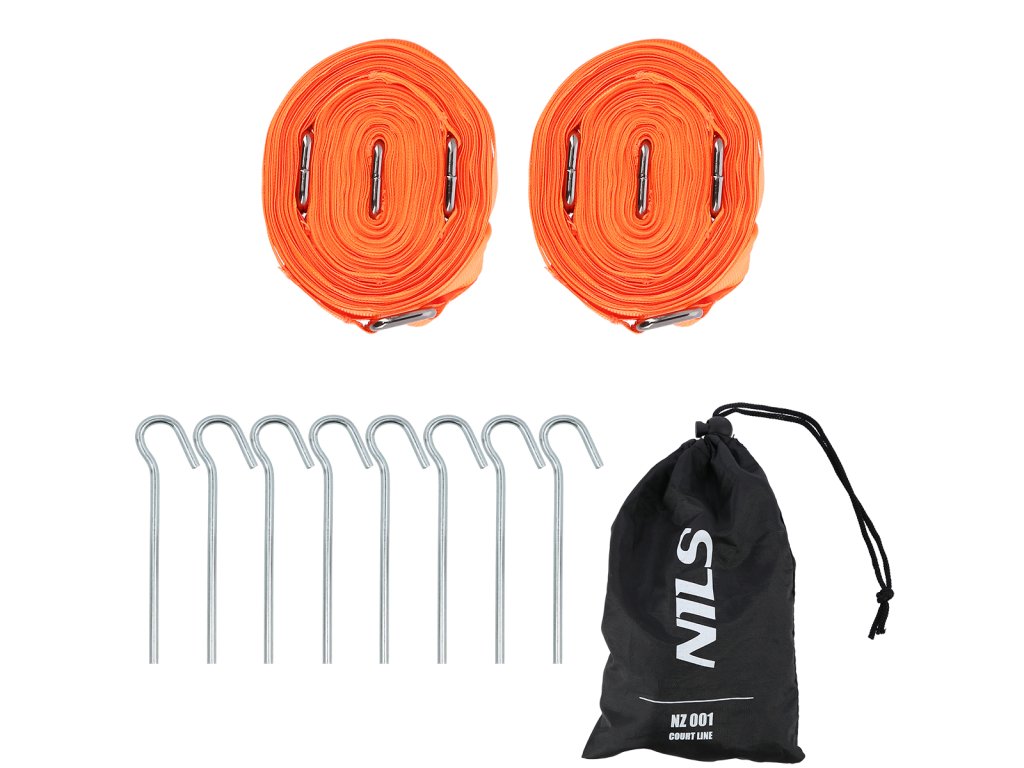 NILS NZ001 je kompletní sada pro vyznačení hrací plochy o dvou čtvercích se stranou 5,5 metru. Sada obsahuje 2 popruhy, 8 kolíků a pytlíček pro pohodné uskladnění a přenášení.