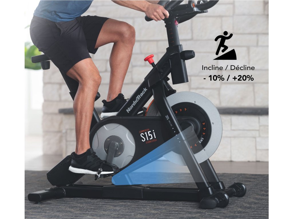 NordicTrack Commercial S15i cyklistický trenažér je špičkový, moderní stroj pro reálný cyklozážitek z pohodlí vašeho domova. Tento jedinečný trenažér, díky jeho parametrům, lze využít i v menších komerčních prostorách jako jsou klubová fitness, hotely, welness. Dokonalá ergonomie, řemenový pohon, polohovatelné sedlo i řidítka, elektronicky nastavitelný přední i zadní sklon a elektronické odvládaní odporu ve 22 úrovních vám poskytnou věrný pocit jízdy na silničním kole. Cyklotrenažér disponuje kalibrovaným setrvačníkem o hmotnosti 13 kg, ten zaručuje stroji plynulý a tichý chod.