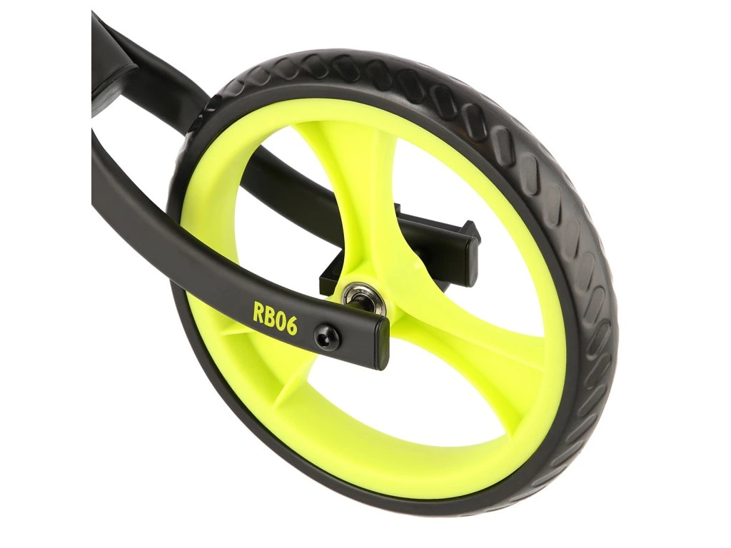 Konstrukce RB06 je vyrobena z kvalitní, lakované oceli. Pro maximální bezpečí jsou všechny hrany zaoblené. Rukojeti jsou osazeny gripy s límcem na obou stranách, který zamezuje zklouznutí dlaně. Středové složení je vypaveno zarážkou, která zamezuje protočení řídítek. Plastová kola jsou osazena 9", plnou pneumatikou, která nejde prorazit. Ložiska ABEC 9 zaručují plynulou jízdu. Řídítka a sedlo jsou výškově nastavitelné.