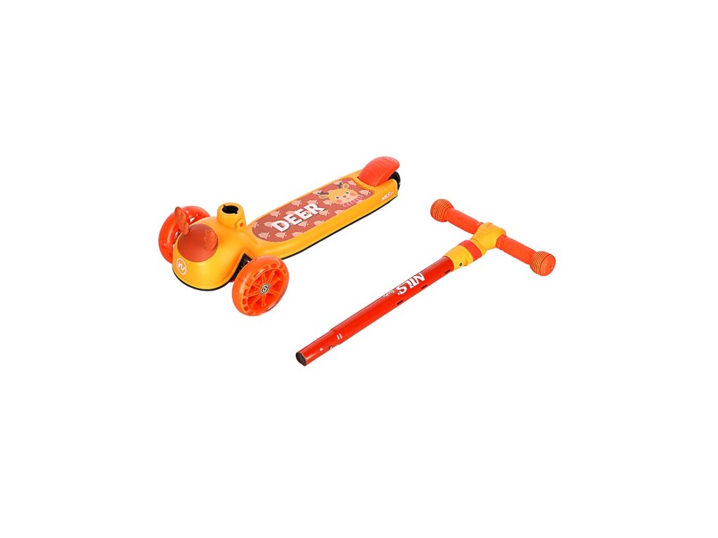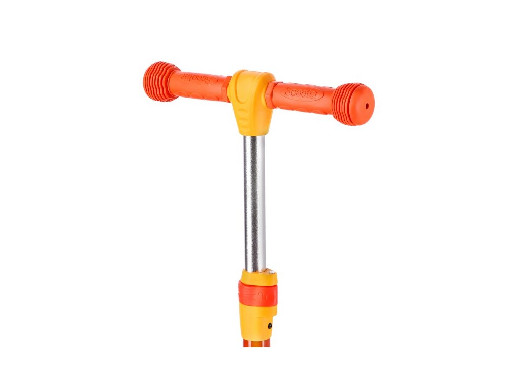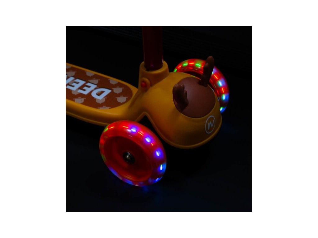 Tři kolečka jsou garancí vysoké stability. Teleskopická řídítka jsou pevná a slouží primárně pro udržení rovnováhy. Manévrování se provádí pomocí přenášení váhy na jednu, nebo druhou stranu. Díky řízení pomocí přenášení váhy je koloběžka maximálně bezpečná a nehrozí její převrhnutí. Řídítka jsou výškově nastavitelná. Gripy na řídítkách jsou vyrobeny z gumy pro jistý úchop. Konce gripů jsou opatřeny "bambulí", která zamezuje sesmyknutí dlaně z gripu a zároveň dlaň chrání, když dítě například zavadí řídítkem o překážku - například o fasádu domu. Svítící kolečka zvyšují viditelnost za šera a pro plynulé otáčení a svižnou jízdu jsou osazeny ložisky ABEC 9. Zadní blatník slouží jako nášlapná brzda pro bezpečné zastavení koloběžky.