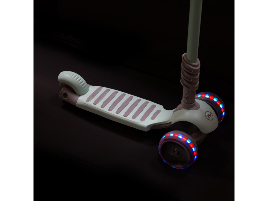 Všechny kolečka v sobě mají ukryty LED diody, které se při pohybu rozsvítí. Svítící kolečka zvyšují viditelnost koloběžky za šera. Všechny kolečka jsou pro plynulý pohyb osazeny ložisky ABEC 7. Široké zadní kolečko zvyšuje stabilitu koloběžky.