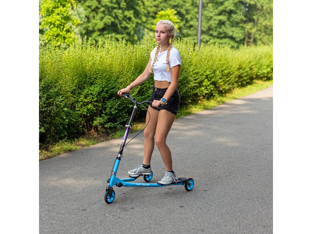 Fliker NILS Extreme FL145 je určen jak pro děti, tak i pro dospělé. Fliker je senzační koloběžka, kterou ženete dopředu rotačním pohybem boků. Jízda na tomto typu koloběžky je zábavná a dostane každého! Ovládání je navíc snadné a dokonale plynulé! Zkušení jezdci dokáží na Flikeru neskutečné triky a dosahují rychlosti až 20 km/h. Navíc, což je možná to nejdůležitější, při jízdě zapojujete všechny svaly těla a tudíž napomáhá zesílení a redukci tuku. Ergonomické rukojeti trojkoloběžky absorbují vibrace a dokonale padnou do ruky! Brzdový systém Grip Brake vám vždy umožní bezpečně zastavit. Bezpečností dorazy zabraňují převrácení koloběžky!