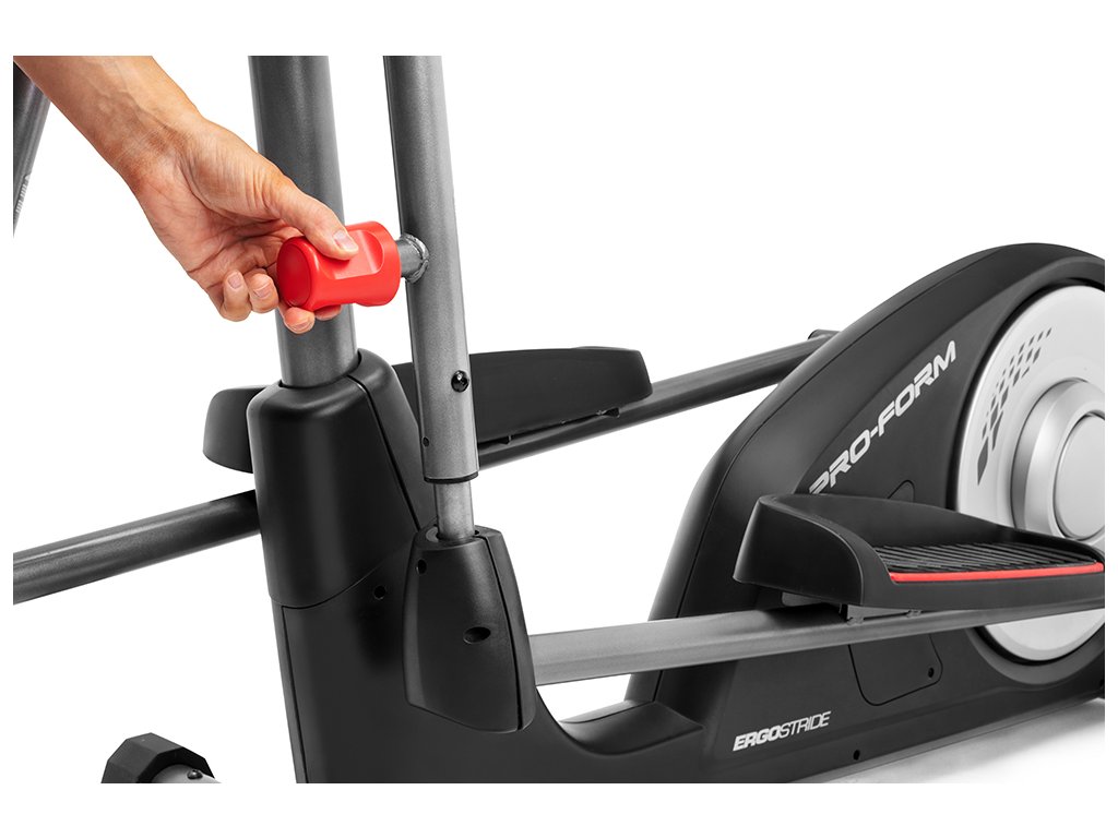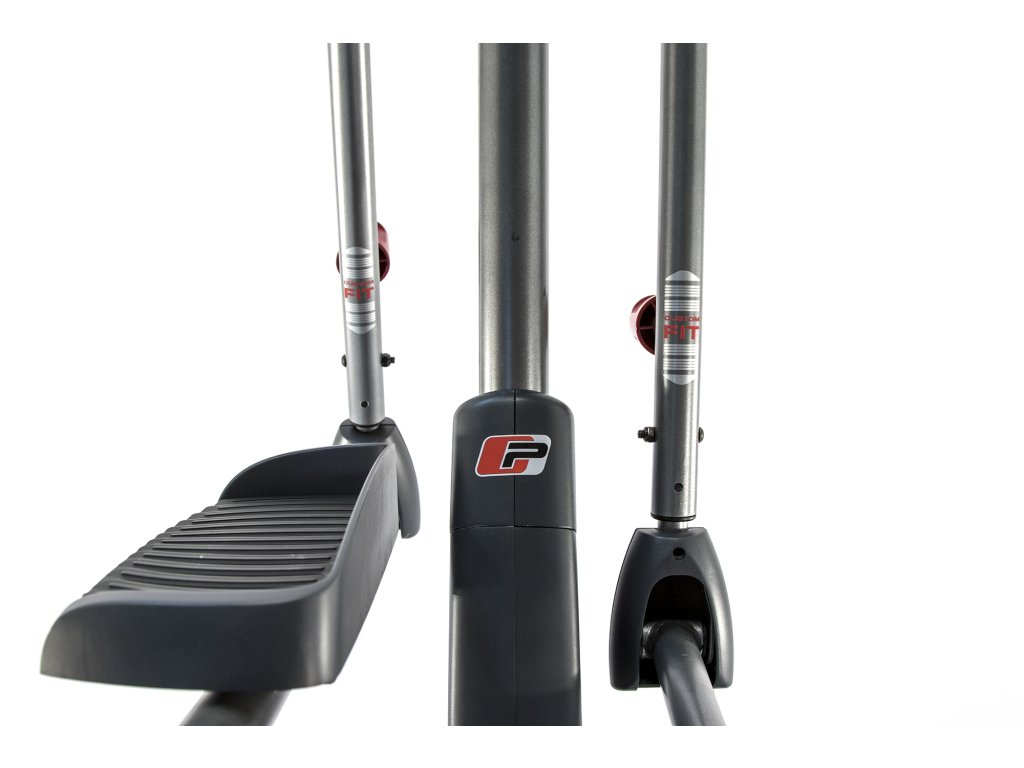 PRO-FORM 525 CSE+ poskytuje přirozený pohyb, a to díky univerzální délce kroku 41 cm. Nášlapy lze snadno upravit tak, aby odpovídaly vámi preferované délce kroku. Madla jsou opatřená protiskluzovým materiálem. Stabilitu při každém tréninku zajistí vyrovnávače nerovností podlahy. Transportní kolečka a úchopové madlo umožní snadnou manipulaci se strojem kamkoliv v prostoru. Součástí jsou integrované reproduktory pro poslech hudby.