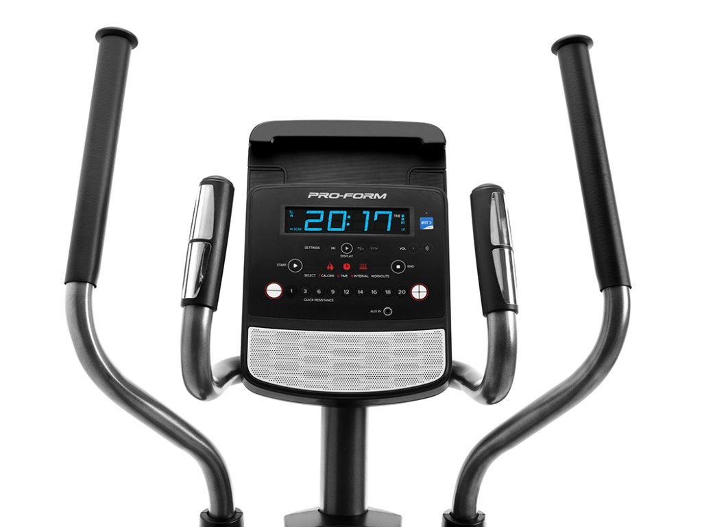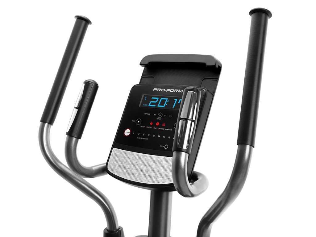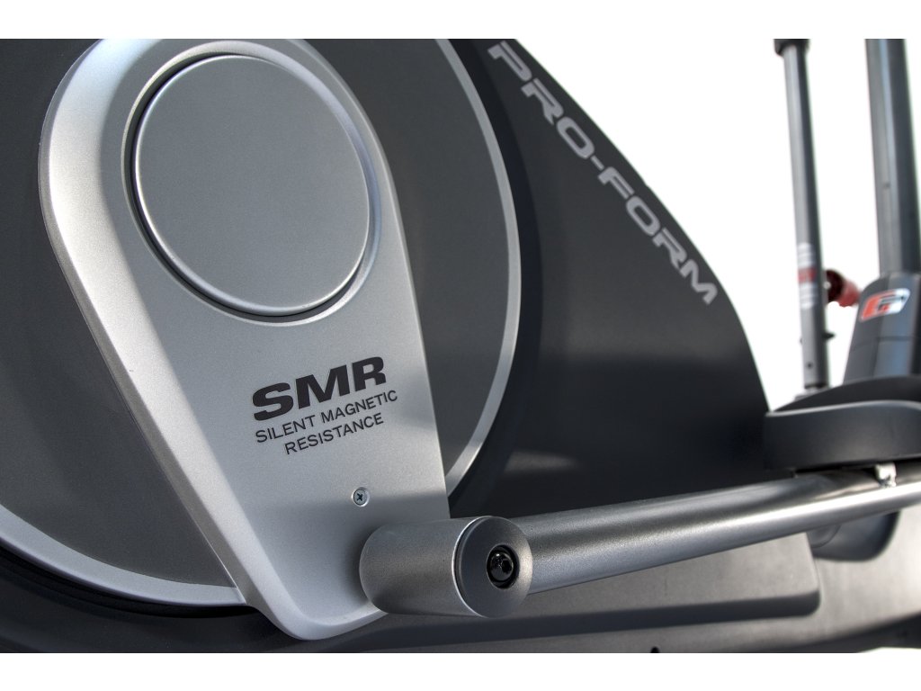 PRO-FORM eliptický trenažér 525 CSE+ nabídne svému majiteli kardiovaskulární a vytrvalostní trénink společně se silovým tréninkem v jednom stroji. Pomůže s hubnutím i kondičním tréninkem. Bez ohledu na počasí můžete trénovat v teple domova. Zapojením dolní a horní poloviny těla máte o komplexní trénink postaráno. Eliptikaly se vyznačují tím, že nezatěžují kloubní aparát. Cvičit tak můžete bez obav o kolena a kyčle. Intenzitu tréninku ovládáte elektronicky ve 20 stupních odporu, který je tvořen magnetickým brzdným systémem. Hmotnost setrvačníku je 14 kg, veškeré kloubní spoje jsou osazeny ložisky. Trenažer bude vhodný pro drobné i vyšší postavy. Nosnost stroje je 125 kg.