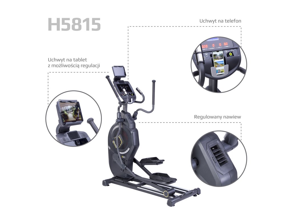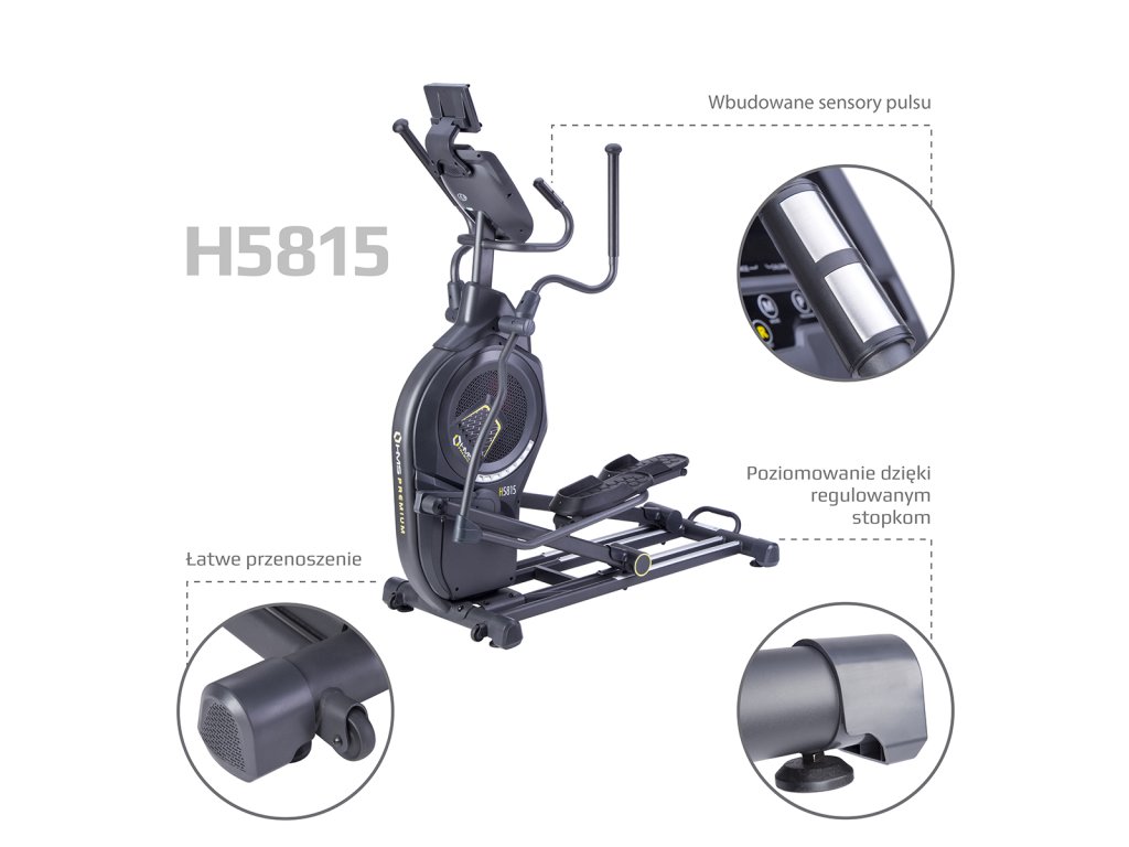 Eliptický trenažér HMS Premium H5815 spadá do kategorie Semi Commercial a může být tedy použit jak v domácí tělocvičně, tak v soukromých klubech a hotelových posilovnách. Největší výhodou modelu je systém zátěže, který kombinuje klasickou, magnetickou brzdu s větrným odporem známým z Air Biků. Kombinace magnetické a lineární zátěže spolu s 8-mi kilogramovým zátěžovým kolem zajišťují plynulý pohyb, který u běžného trenažéru není možný.