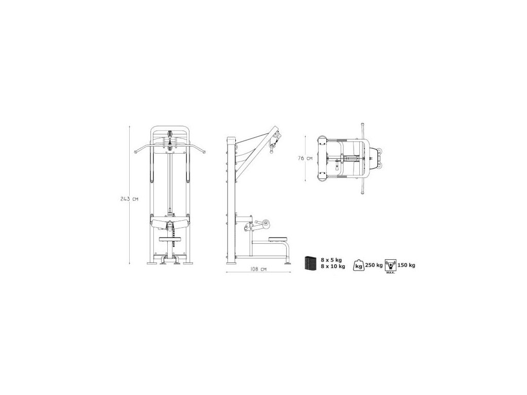 Horní kladka MARBO MP-U206 je nekompromisní, profesionální vybavení pro Vaší posilovnu. Pro výrobu byly zvoleny ocelové profily 120x60x3mm a 80x40x3mm, které zaručují nečekanou trvanlivost. Zátěž tvoří 8ks 5kg a 8 ks 10kg cihel. Celková váha závaží dodávána se strojem je tedy 120kg a jde rozšířit až na 160kg. Tichý chod zajištuje zakrytování černým plastem, z přední části je kryt opatřen průhledem pro snadné nastavení požadovaného počtu cihel. Kladka je ve výšce 230cm a tak mohou na stroji cvičit i jedinci o výšce 200cm. Polstrovaní je ze syntetické kůže sešité režnou nití značky COATS. Zarážka nohou je nastavitelná do tří poloh. Stroj je navíc opatřen velikou samolepkou, která instruuje cvičence, jaké cviky jdou na stroji provádět a které skupiny svalů daný cvik posiluje.
