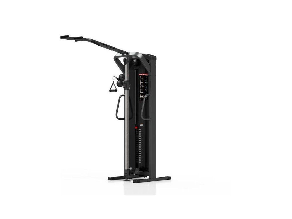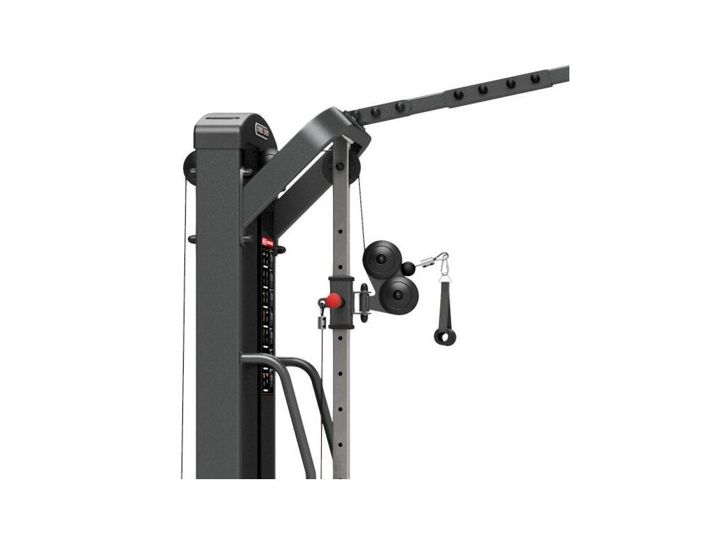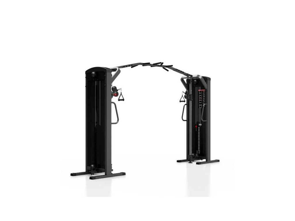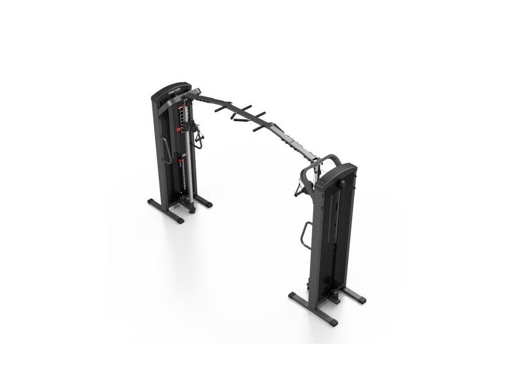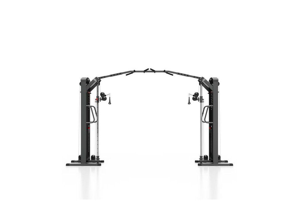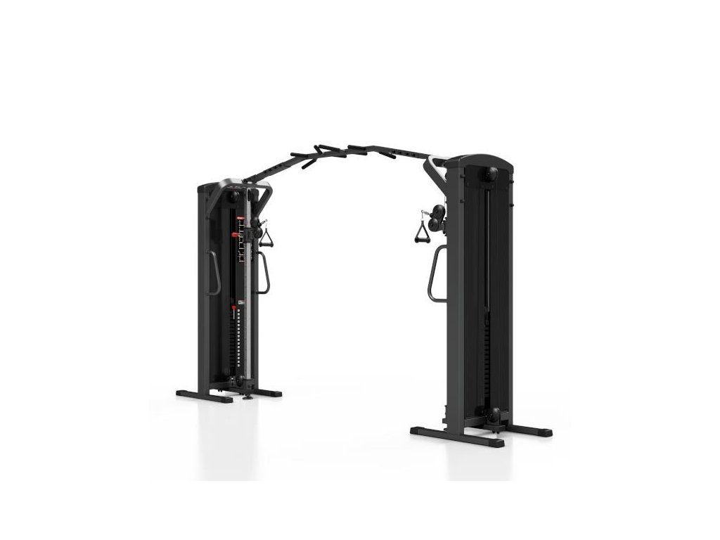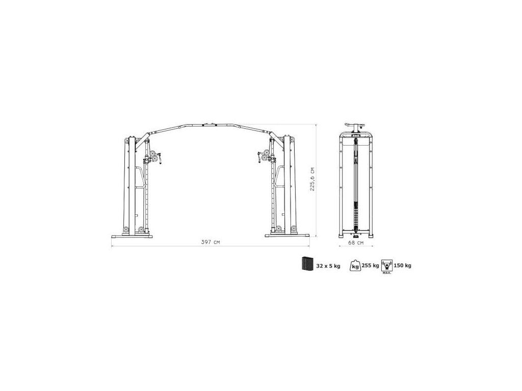 Posilovací brána MARBO MP-U204 s nastavitelnou výškou kladek a sestavou hrazd je nekompromisní, profesionální vybavení pro Vaší posilovnu. Pro výrobu byly zvoleny ocelové profily 120x60x3mm a 80x40x3mm, které zaručují nečekanou trvanlivost. Variabilitu použití zajištují výškově nastavitelné kladky. Jejich posun je řešen kluzným pouzdrem s pružinovým kolíkem červené barvy. Na výběr máte z 16-ti nastavení výšky. Na centrálním nosníku se nachází 8 různých madel, jejichž nakombinováním lze dosáhnout až 10-ti různých úchopů. Úchyty jsou opatřeny vrstvou silné pěny pro pohodlný grip. Dva samostatné štosy o hmotnosti 80kg (celkem 160kg) jsou odstupňovány po 5kg. Obě centrální části brány jsou zakrytovány černým plastem a v místě štosů je použito průhledné plexisklo. Stroj je navíc opatřen velikou samolepkou, která instruuje cvičence, jaké cviky jdou na bráně provádět a které skupiny svalů daný cvik posiluje.