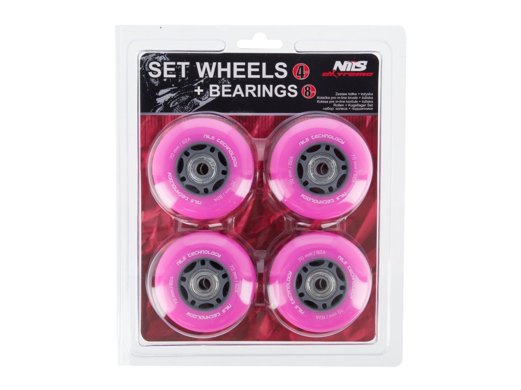 Náhradní PU kolečka s ložisky NILS EXTREME pro kolečkové brusle. Tvrodst 82A zaručuje přizpůsobení každému povrchu. Ložiska ABEC 7 zaručují dlouhou životnost. Velikost koleček se volí podle stylu jízdy. Menší kolečka jsou pomalejší, ale umožňují lepší manévrovatelnost. Větší kolečka jsou rychlejší, ale obtížněji zatáčí.