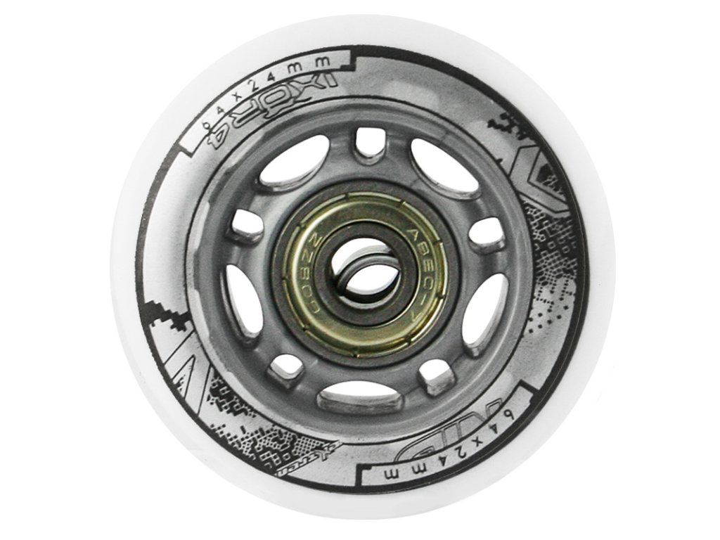 Náhradní sada koleček velikosti 64x24 mm mléčné barvy a tvrdostí 82 A s ložisky ABEC 7.
