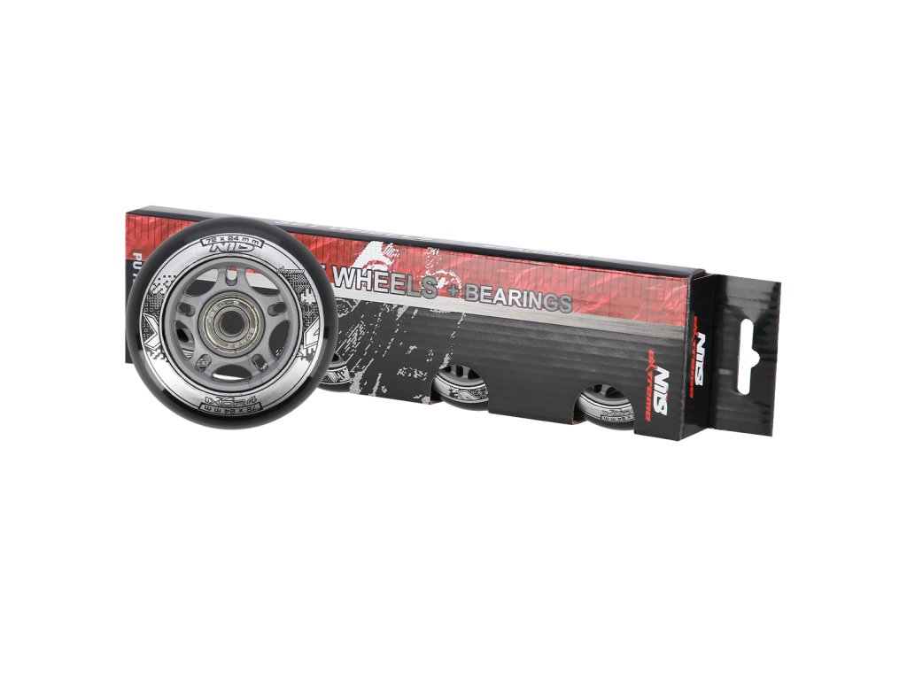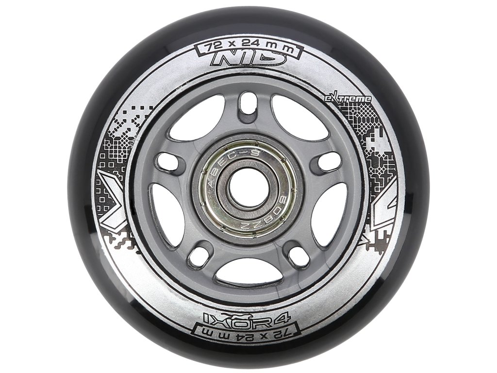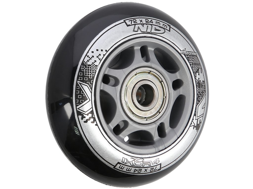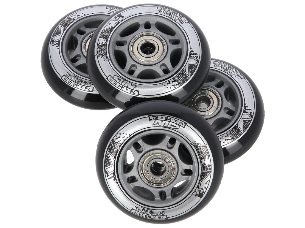 Náhradní sada koleček velikosti 72x24 mm černé barvy a tvrdostí 82 A s ložisky ABEC 9.