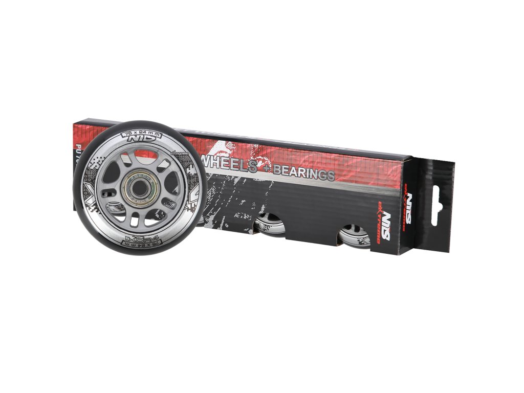 Sestava černých PU koleček 76x24 + ložiska ABEC9 NILS EXTREME