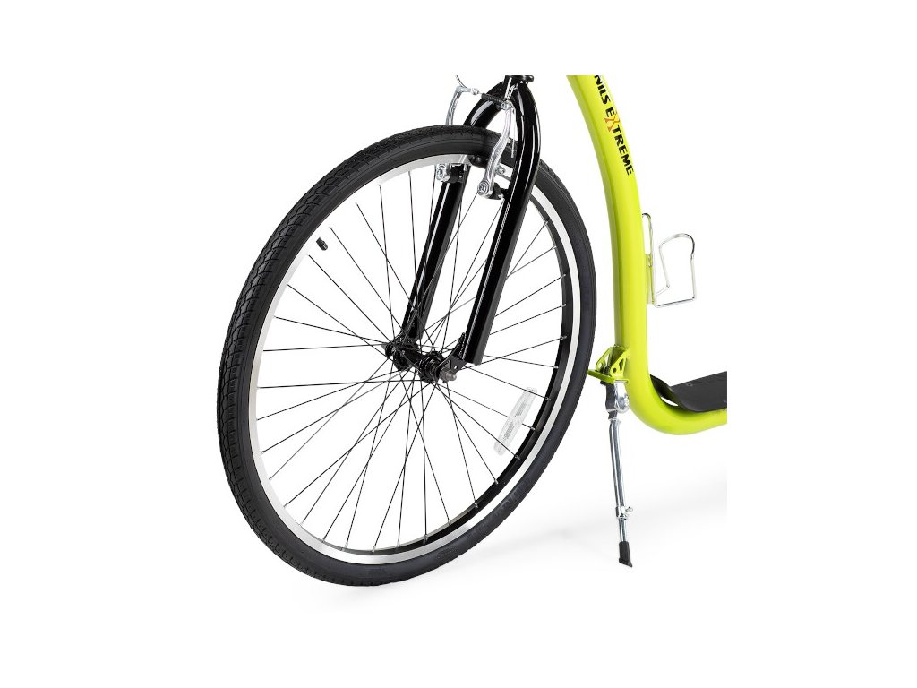 Koloběžka NILS Extreme WHS260 je ideálním prostředkem pro zdolávání městských uliček, dlážděných chodníků a lesních stezek. Model WHS260 je koloběžka se sportovním charakterem. Díky nosnosti 120 kg si ji může užívat celá rodina. Rám je vyroben z kvalitní oceli, na ráfky jsou obuty pneumatiky s duší a pro maximální bezpečnost je koloběžka vybavena brzdami typu V-brake. Tyto vlastnosti koloběžku přímo předurčují k použití na asfaltu, dlažbě, ale i na štěrku a nezpevněných stezkách. Integrovaný stojánek pak usnadňuje parkování koloběžky a velké přední kolo zlepšuje ovladatelnost a prostupnost terénem. V zadní části rámu se nachází dvojitá patka, která umožňuje měnit náklon koloběžky podle toho, zda chceme jezdit bezpečněji v lehkém terénu a nebo rychleji po rovné silnici