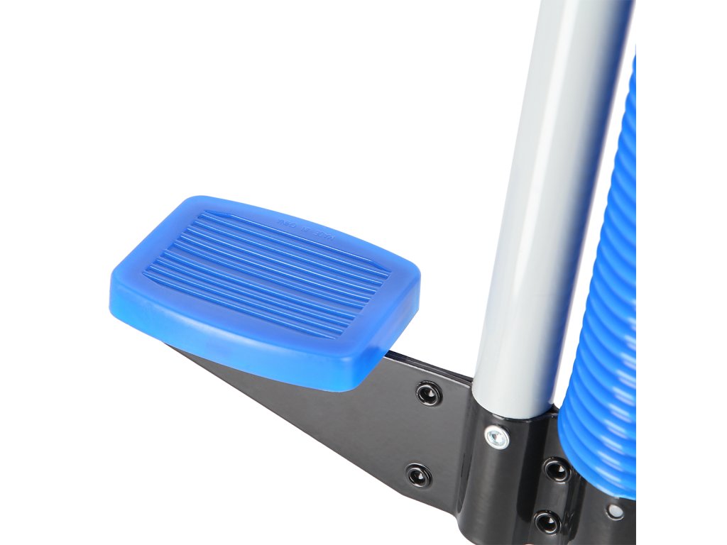 Ocelový rám garantuje nosnost 70 kilogramů. Rukojeti jsou potaženy PU pěnou, která se přizpůsobí stisku dlaně, zajistí komfortní úchop a zamezí zklouznutí dlaně z madla. Na stupačky byl použit tvrzený plast a jejich povrch je opatřen drážkamy proti sklouznutí boty. Kruhová koncovka skákací tyče je osazena gumou, její tvar umožňuje provádění skoků do všech směrů.