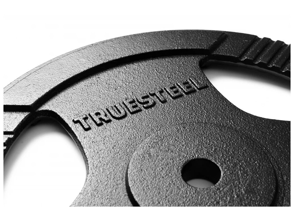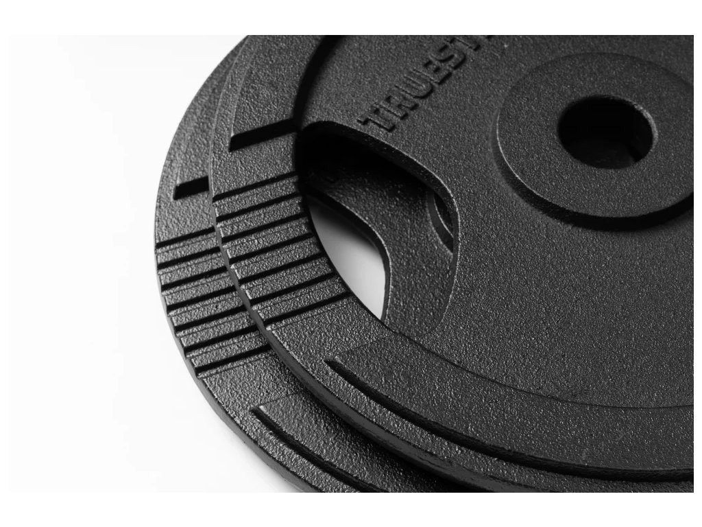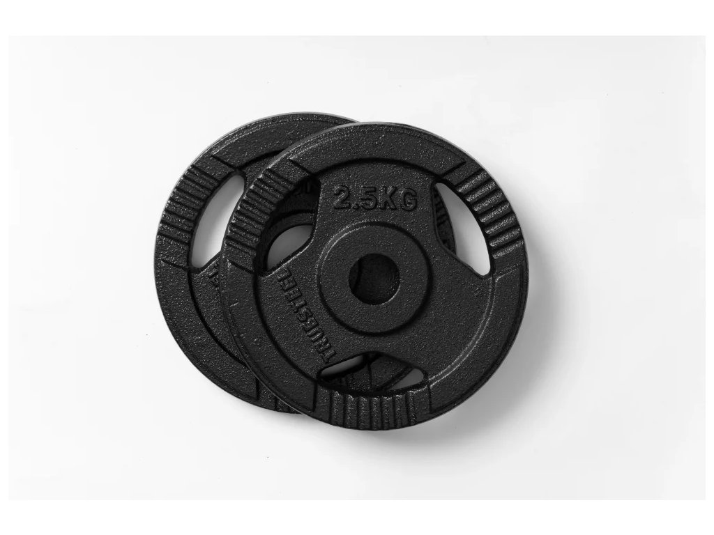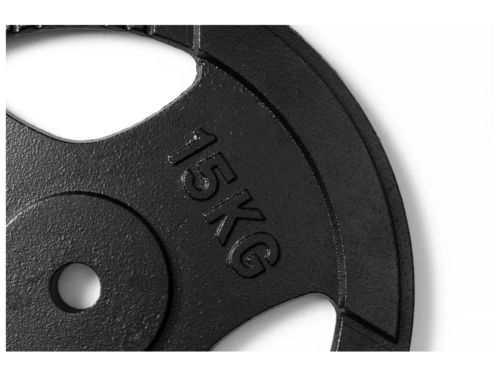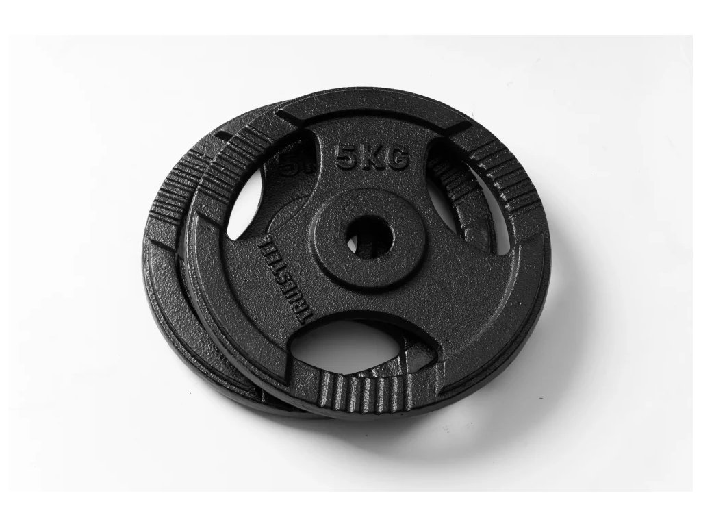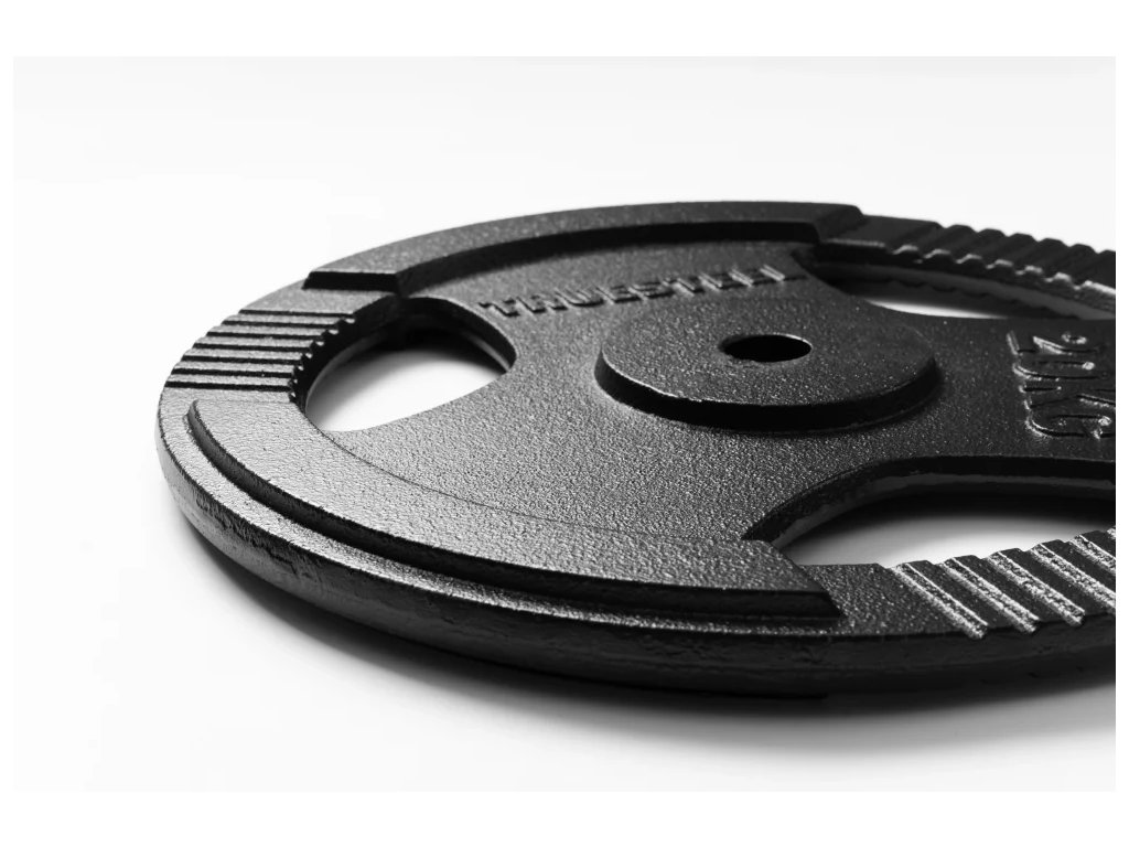 Vsaď na jistotu s litinovými Tri-Grip kotouči Taky miluješ cinkot klasických kovových kotoučů? Ten, co ti říká, že jedeš naplno? Pak jsou pro tebe naše "old-school" litinové Tri-Grip kotouče to pravé! Ať už jsi úplný začátečník, nebo ostřílený profík, litinové kotouče jsou sázka na jistotu. Jsou to univerzální kotouče, které ti budou spolehlivě sloužit po mnoho let. Tri-Grip kotouče se hodí do každé posilovny – ale pozor, tyhle kotouče nejsou pro zahazování z velkých výšek! Pro zahazování sáhni raději po našich Truesteel bumper kotoučích. Ty vydrží i to nejtvrdší zacházení. Všestranný design? Samozřejmě! Kovový povrch je ošetřen jemnou práškovou barvou a díky přehlednému značení hmotnosti vždy budeš přesně vědět, kolik který kotouč váží. Máš v posilovně osy a posilovací tyče s průměrem nakládací části 30 mm? Naše kotouče se středovým otvorem 30 mm padnou na tvé vybavení jako ulité. Díky třem úchopům jsou tyhle kotouče snadno přenosné a neskutečně všestranné. A rozhodně nejsou jen na osu! Používej je samostatně třeba při sedy-lezích se zátěží, Russian twistech nebo výpadech. Proč si vybrat naše litinové Tri-Grip kotouče? ✅ Univerzální použití ✅ Snadná manipulace díky ergonomickým úchopům ✅ Odolnost a dlouhá životnost ✅ Široký výběr hmotností ✅ Průměr středového otvoru 30 mm Široký výběr Chceš kompletní sadu kotoučů, nebo jen pár kousků na zkoušku? U nás najdeš všechno! Máme pro tebe lehké 1,25 kg kotouče i pořádné 25 kg závaží. Vnější průměř 45 cm Naše 15 až 25 kg kotouče mají vnější průměr 45 cm. Díky tomu budeš mít činku v perfektní výšce pro mrtvé tahy, přítahy v předklonu a spoustu dalších cviků. Středový otvor 30 mm Potřebuješ kotouče s otvorem 30 mm? Pak jsi u nás správně! Naše kotouče jsou určené pro všechny posilovací tyče, osy a stroje s tímto průměrem nakládacích částí. 100% garance spokojenosti Veškeré zakoupené zboží můžete do 30 dnů zdarma vrátit bez udání důvodu. To znamená, že zboží, které chcete vrátit, u Vás zdarma vyzvedneme a peníze Vám vrátíme na Vámi zvolený účet do 2 pracovních dnů po navrácení zboží. Stačí nám napsat na info@truesteel.eu nebo zavolat na +420 777670947. Vrácení zboží má 2 podmínky - zboží musíte řádně zabalit, aby se při přepravě nepoškodilo a zakoupené zboží nesmí být poškozené. Garance slouží k prohlédnutí zboží, ne k jeho opakovanému použití.Doplňkové parametry