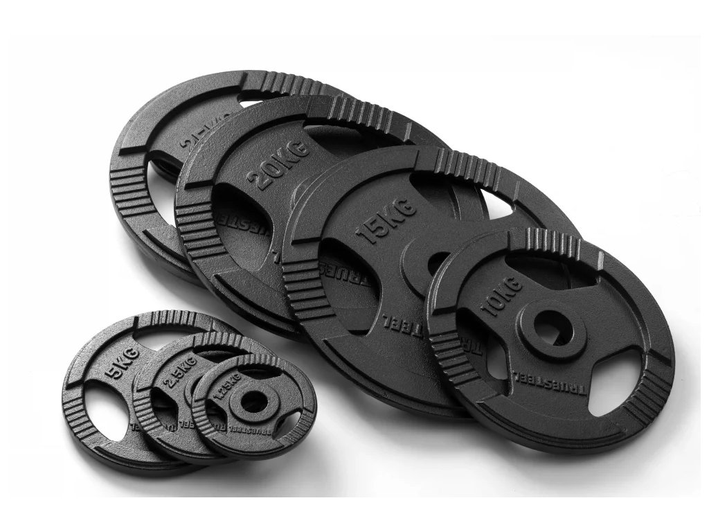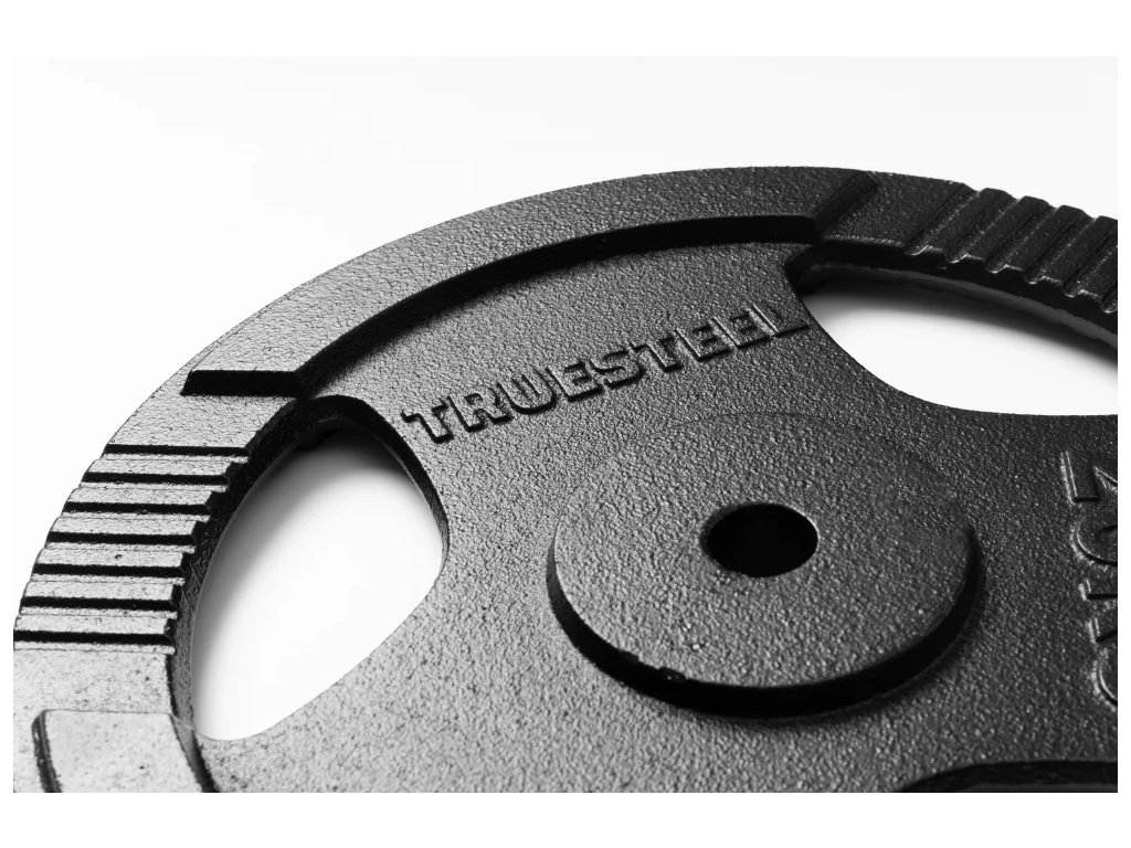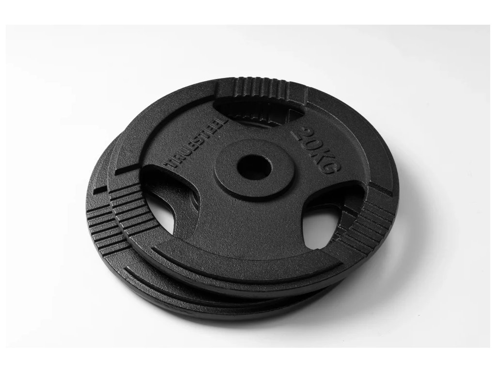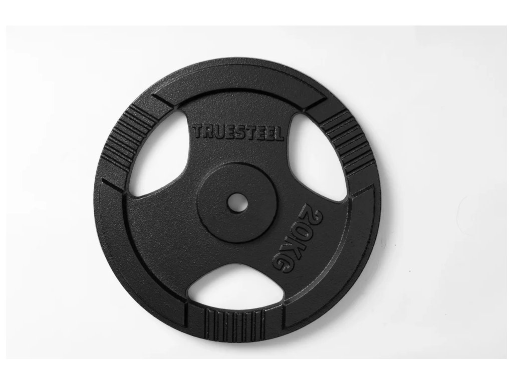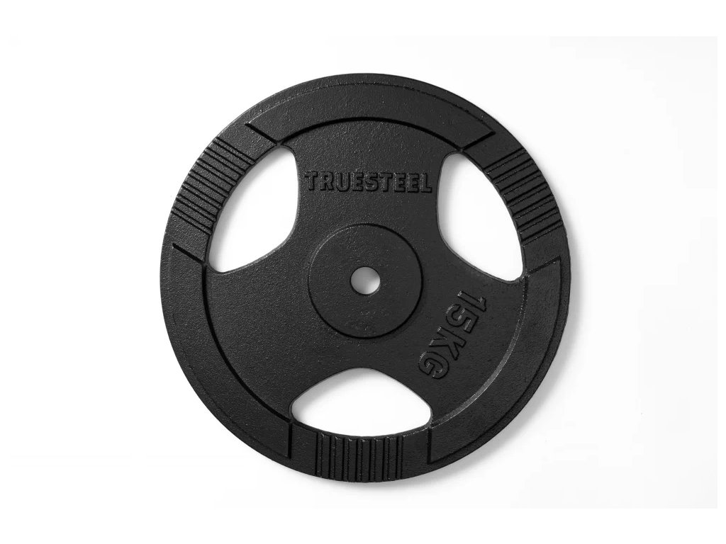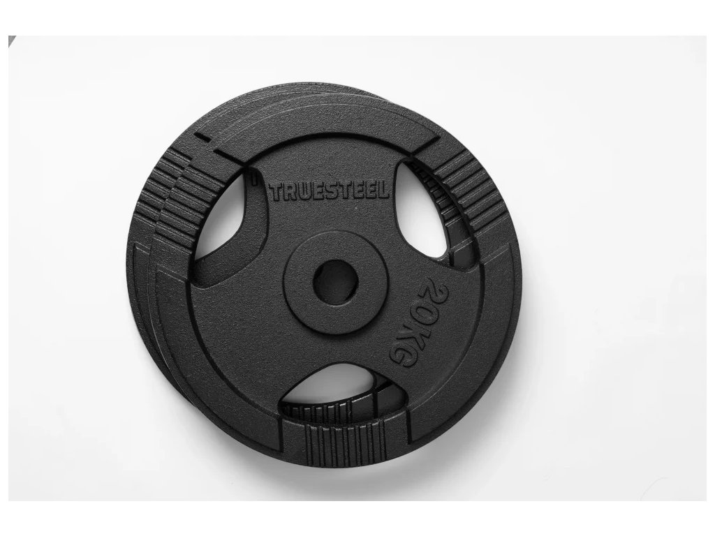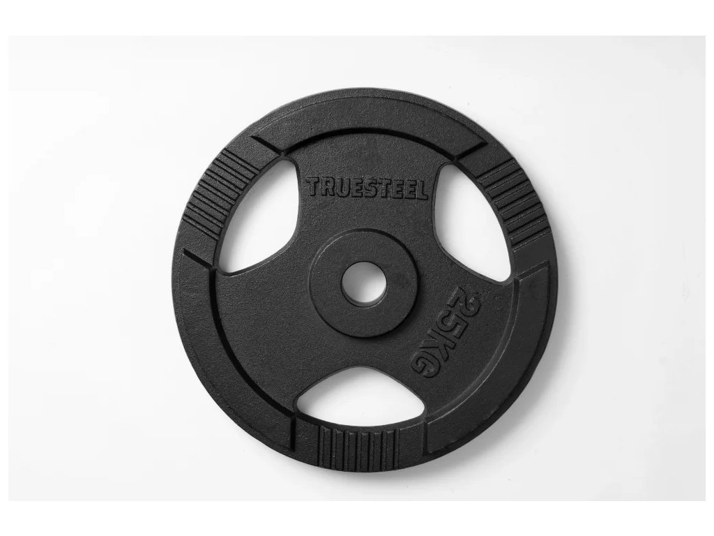 Vsaď na jistotu s litinovými Tri-Grip kotouči Taky miluješ cinkot klasických kovových kotoučů? Ten, co ti říká, že jedeš naplno? Pak jsou pro tebe naše "old-school" litinové Tri-Grip kotouče to pravé! Ať už jsi úplný začátečník, nebo ostřílený profík, litinové kotouče jsou sázka na jistotu. Jsou to univerzální kotouče, které ti budou spolehlivě sloužit po mnoho let. Tri-Grip kotouče se hodí do každé posilovny – ale pozor, tyhle kotouče nejsou pro zahazování z velkých výšek! Pro zahazování sáhni raději po našich Truesteel bumper kotoučích. Ty vydrží i to nejtvrdší zacházení. Všestranný design? Samozřejmě! Kovový povrch je ošetřen jemnou práškovou barvou a díky přehlednému značení hmotnosti vždy budeš přesně vědět, kolik který kotouč váží. Máš v posilovně osy a posilovací tyče s průměrem nakládací části 30 mm? Naše kotouče se středovým otvorem 30 mm padnou na tvé vybavení jako ulité. Díky třem úchopům jsou tyhle kotouče snadno přenosné a neskutečně všestranné. A rozhodně nejsou jen na osu! Používej je samostatně třeba při sedy-lezích se zátěží, Russian twistech nebo výpadech. Proč si vybrat naše litinové Tri-Grip kotouče? ✅ Univerzální použití ✅ Snadná manipulace díky ergonomickým úchopům ✅ Odolnost a dlouhá životnost ✅ Široký výběr hmotností ✅ Průměr středového otvoru 30 mm Široký výběr Chceš kompletní sadu kotoučů, nebo jen pár kousků na zkoušku? U nás najdeš všechno! Máme pro tebe lehké 1,25 kg kotouče i pořádné 25 kg závaží. Vnější průměř 45 cm Naše 15 až 25 kg kotouče mají vnější průměr 45 cm. Díky tomu budeš mít činku v perfektní výšce pro mrtvé tahy, přítahy v předklonu a spoustu dalších cviků. Středový otvor 30 mm Potřebuješ kotouče s otvorem 30 mm? Pak jsi u nás správně! Naše kotouče jsou určené pro všechny posilovací tyče, osy a stroje s tímto průměrem nakládacích částí. 100% garance spokojenosti Veškeré zakoupené zboží můžete do 30 dnů zdarma vrátit bez udání důvodu. To znamená, že zboží, které chcete vrátit, u Vás zdarma vyzvedneme a peníze Vám vrátíme na Vámi zvolený účet do 2 pracovních dnů po navrácení zboží. Stačí nám napsat na info@truesteel.eu nebo zavolat na +420 777670947. Vrácení zboží má 2 podmínky - zboží musíte řádně zabalit, aby se při přepravě nepoškodilo a zakoupené zboží nesmí být poškozené. Garance slouží k prohlédnutí zboží, ne k jeho opakovanému použití.Doplňkové parametry